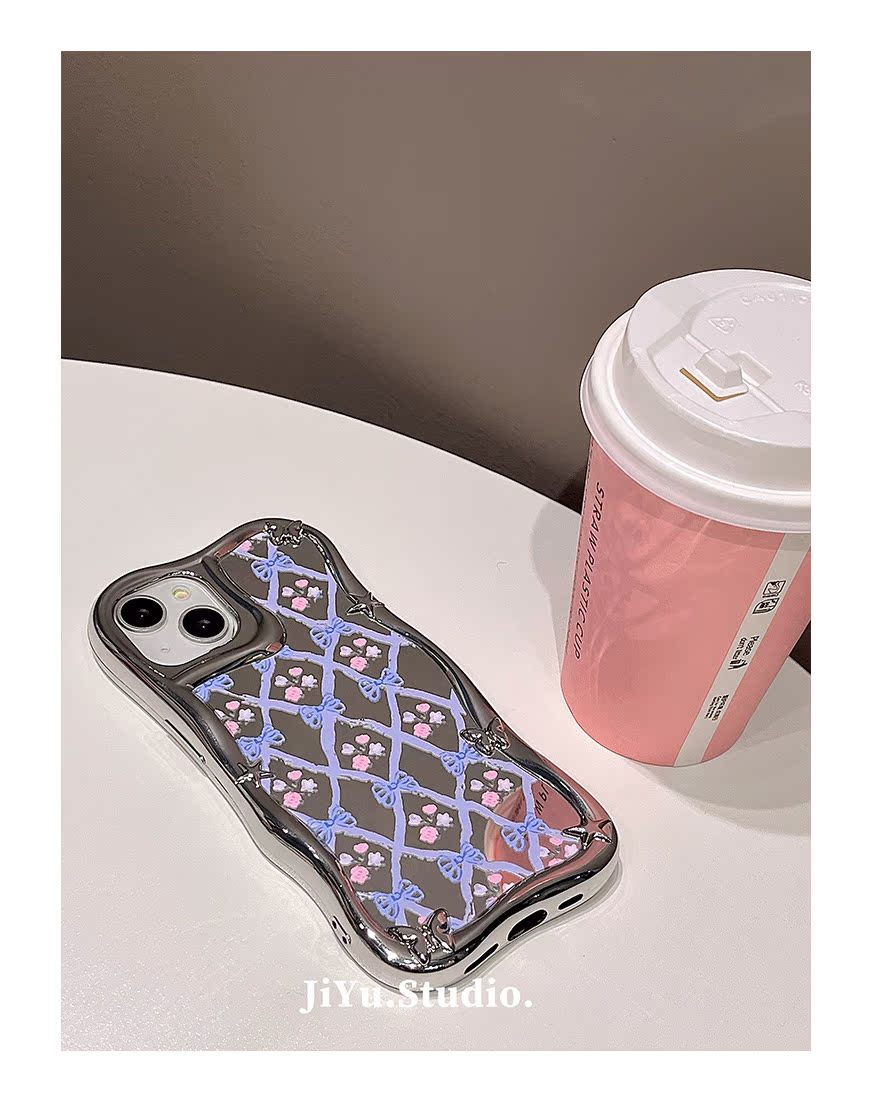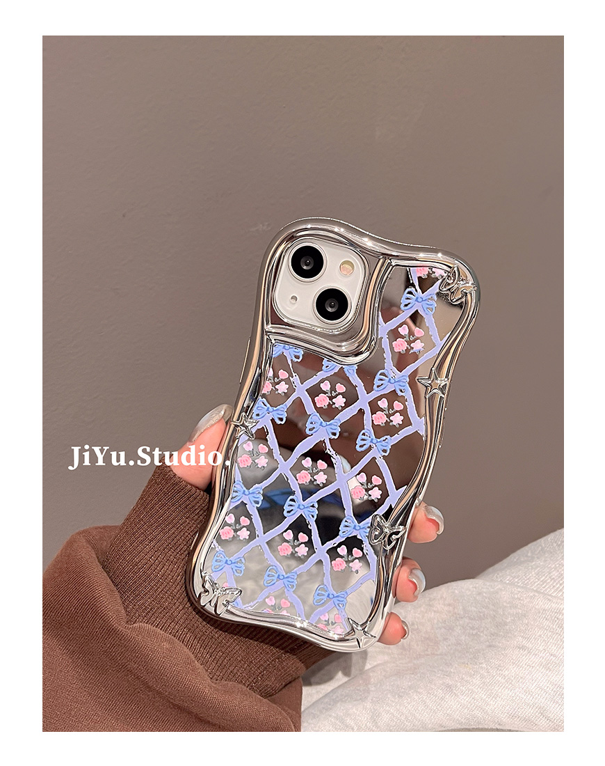 小眾蝴蝶結花朵菱格紋適用蘋果14pro新款iPhone13promax手機殼12pro鏡面個性11女13軟硅膠14pm超火全包保護套
