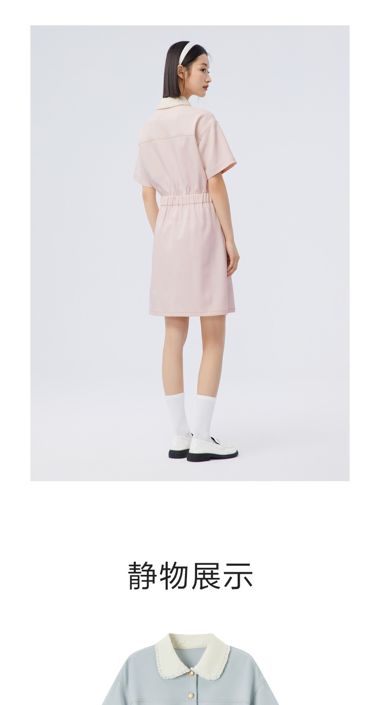 森馬連衣裙女花邊娃娃領俏皮小清新夏季質感明線裙子文藝新款2023