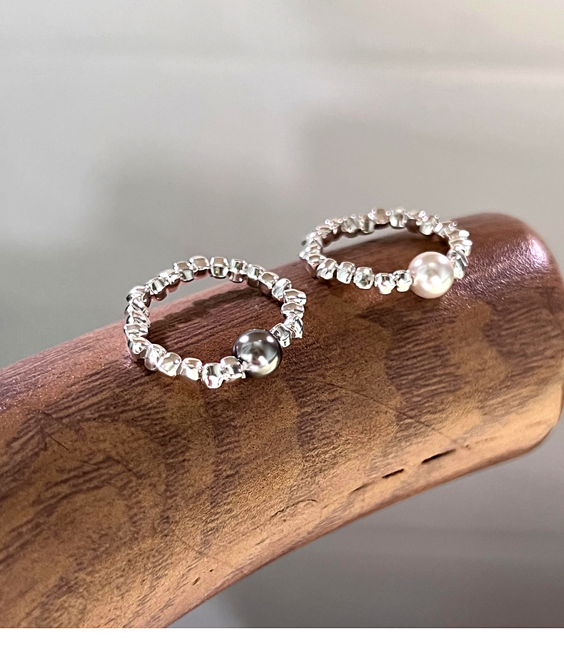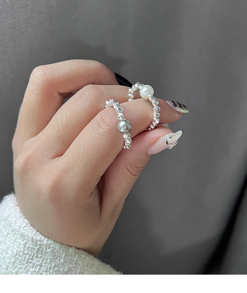 925純銀重工碎銀子珍珠戒指女小眾ins時尚碎銀幾兩指環個性百搭潮