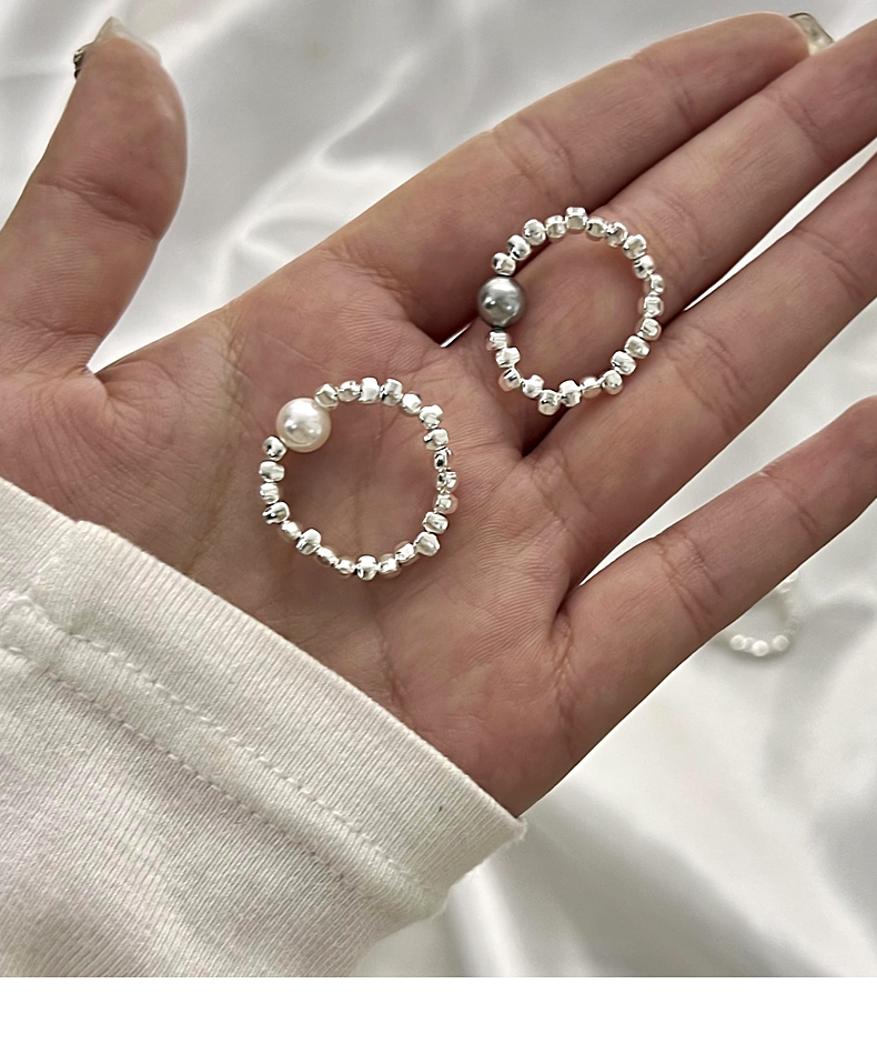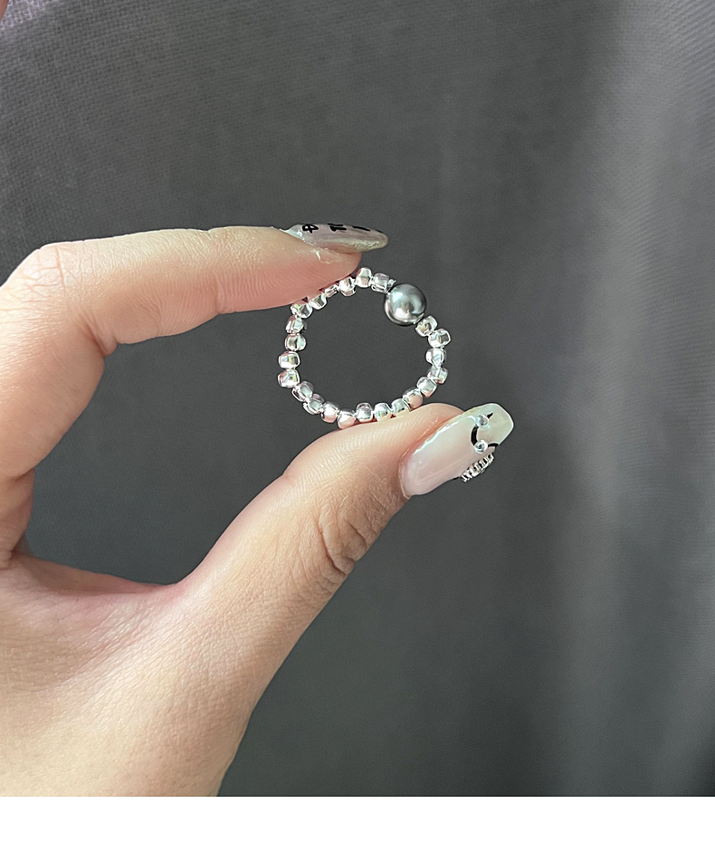 簡約小眾設計感S925純銀碎銀子施家珍珠戒指女彈力繩個性食指尾戒