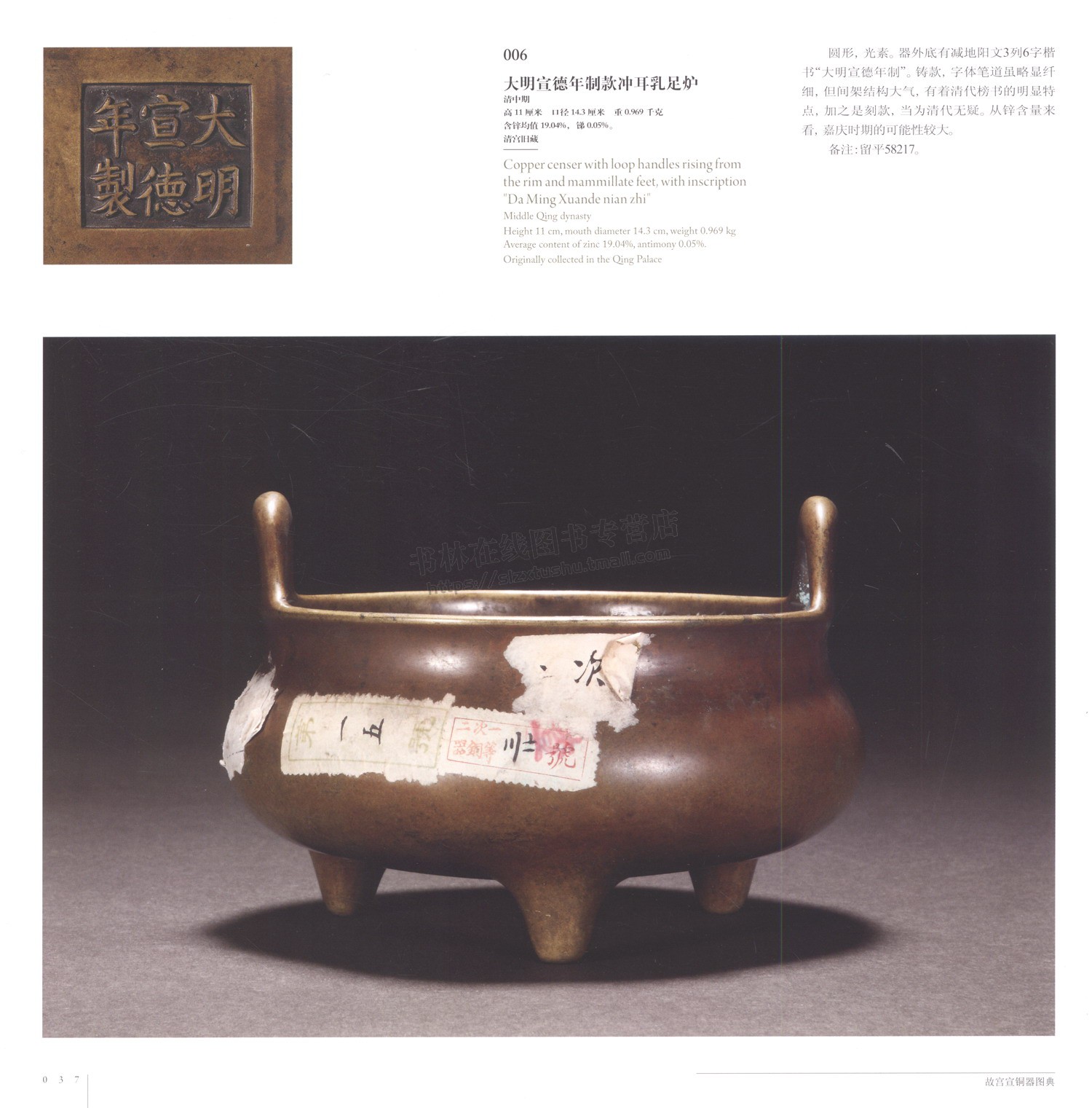 57¥ CZ3457 5hIMWabRzGa¥ https://m.tb.cn/h.5UCpRgT 故宮宣銅器圖典 故宮博物院,李米佳 編 收藏鑒賞社科 宣德爐研究與欣賞正版圖書籍 古代銅器鑒賞 故宮出版社 --------------------- 故宮宣銅器圖典 故宮博物院,李米佳 編 收藏鑒賞社科 宣德爐研究與欣賞正版圖書籍 古代銅器鑒賞 故宮出版社 --------------------- 【原售價】368元 【優惠券】15元 【券后價】353元。