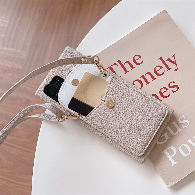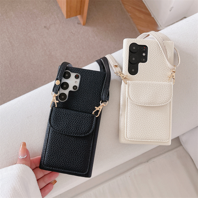 適用于三星S23U/S22斜挎手機殼S23Ultra腕帶插卡保護套A54/iPhone14日韓簡約皮紋硬殼