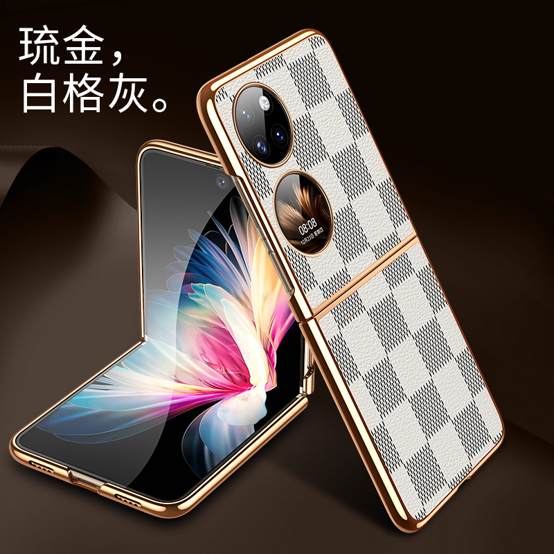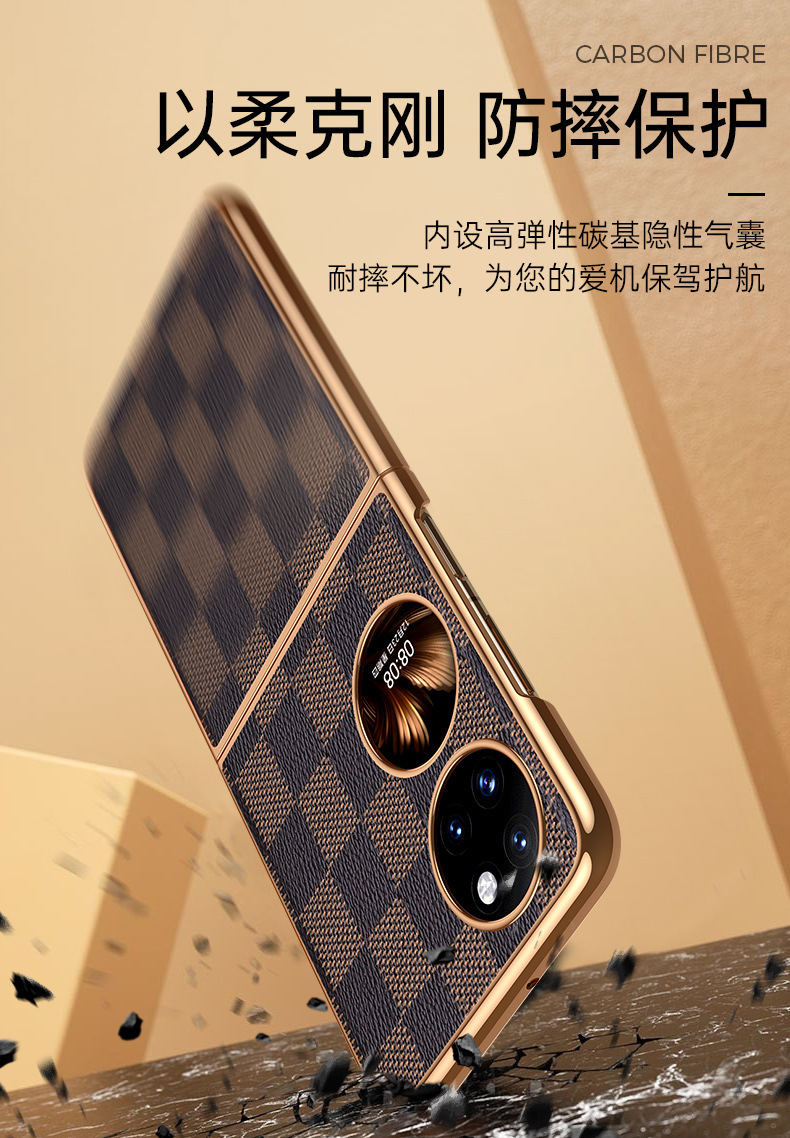 適用華為p50pocket手機殼新款保護套全包防摔折疊屏p50寶盒pockets男高檔藝術硬殼女格子紋外殼