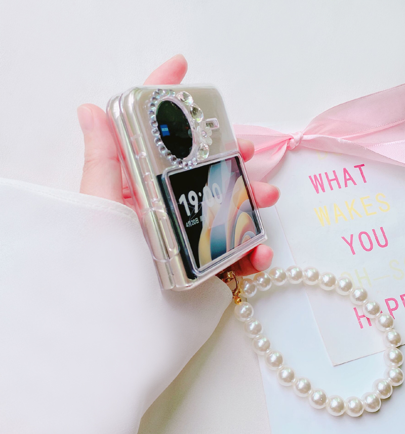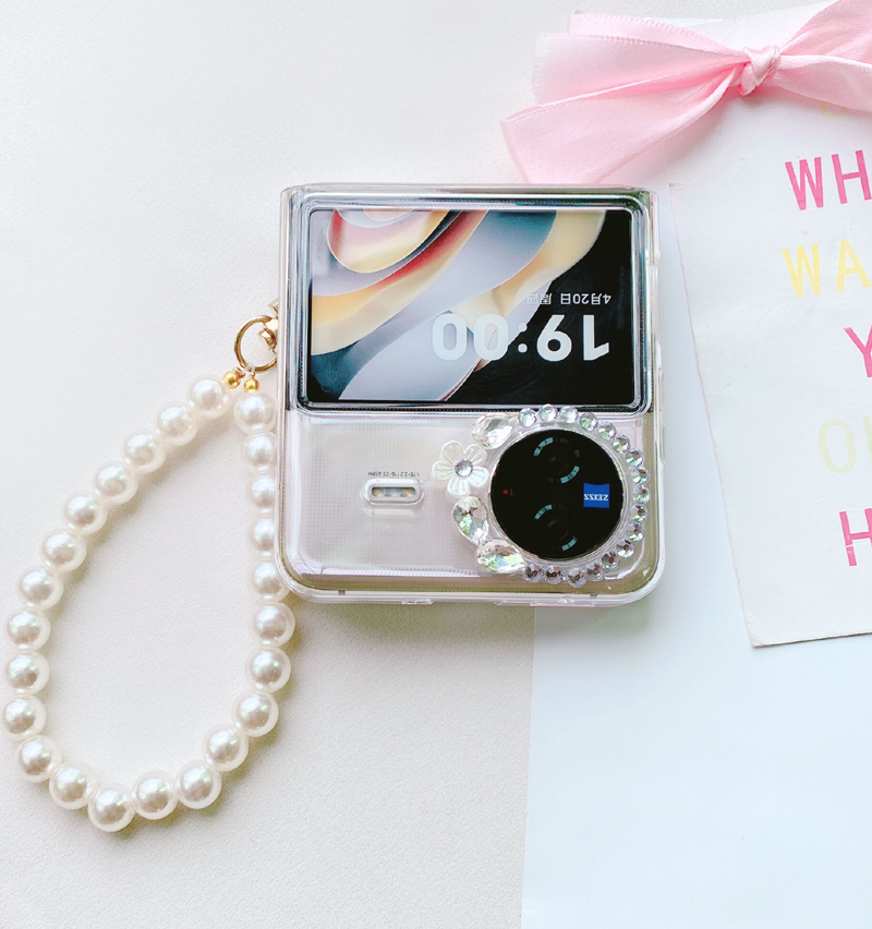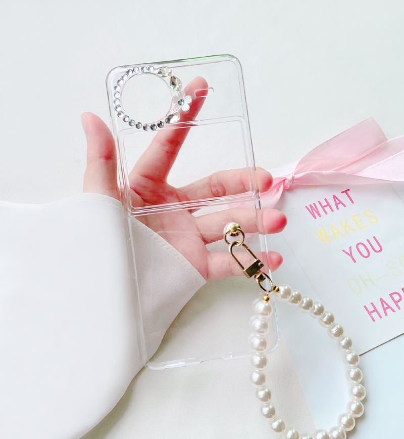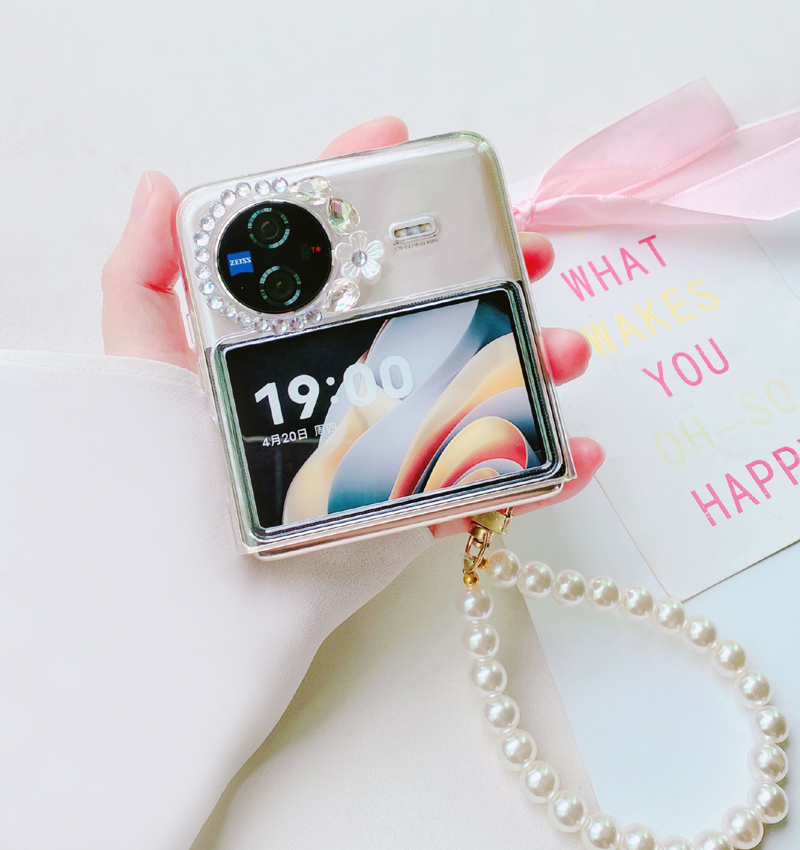 浚雙新款適用vivo x flip手機殼折疊屏透明女防摔輕薄款手提掛繩珍珠鏈日韓閃鉆時尚簡約手工定制奢華外殼潮