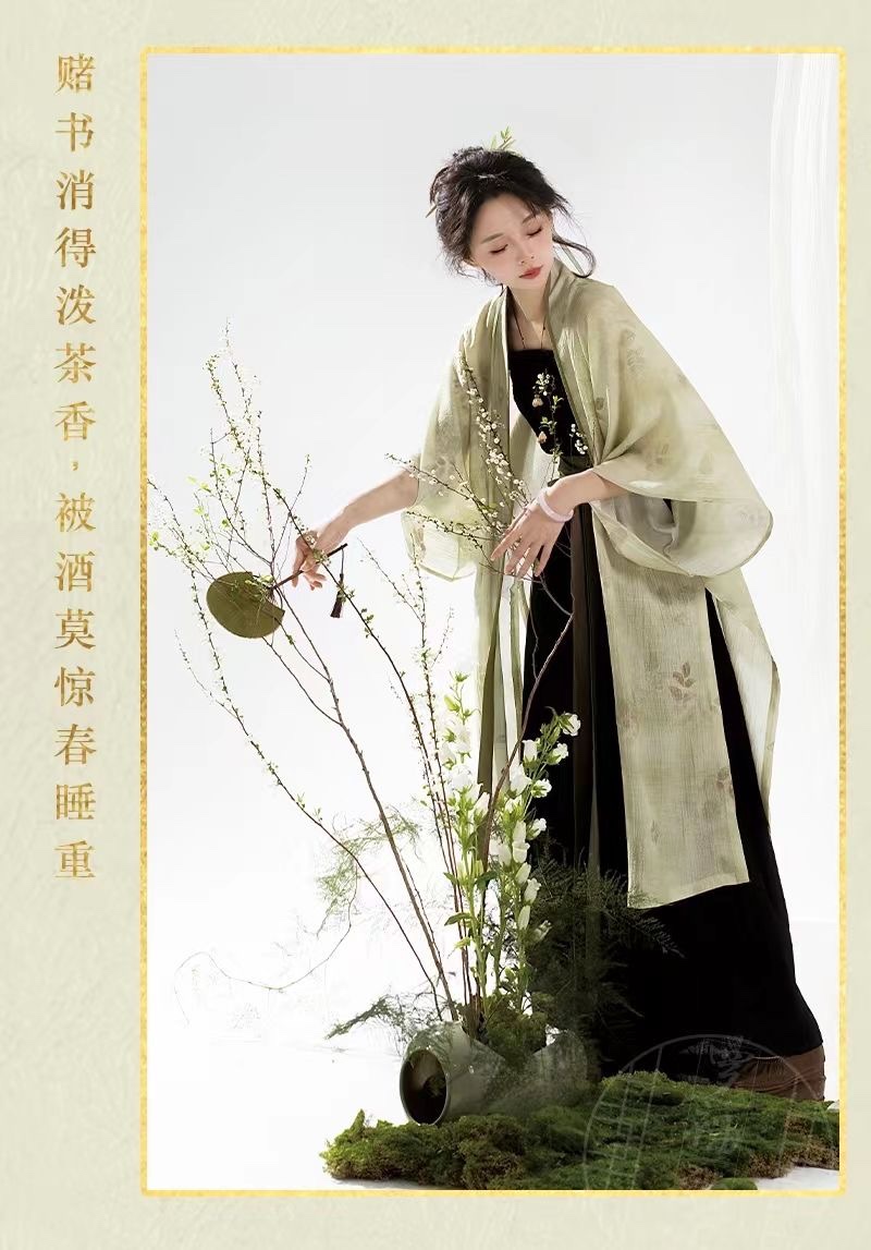 春夏新款春水煎茶羅袖動香國風新中式宋制長衫日常漢服女宋褲全套