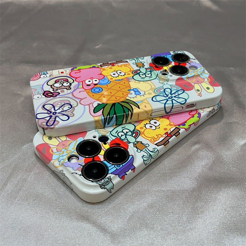 動畫海綿寶寶菲林殼適用iPhone14手機殼13pro蘋果12可愛11promax超火xr硬殼xsmax趣味7plus卡通se3/2保護套xs