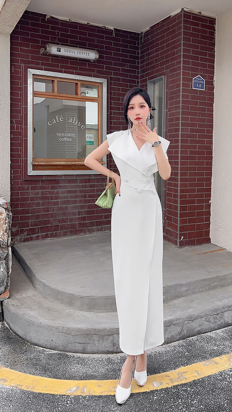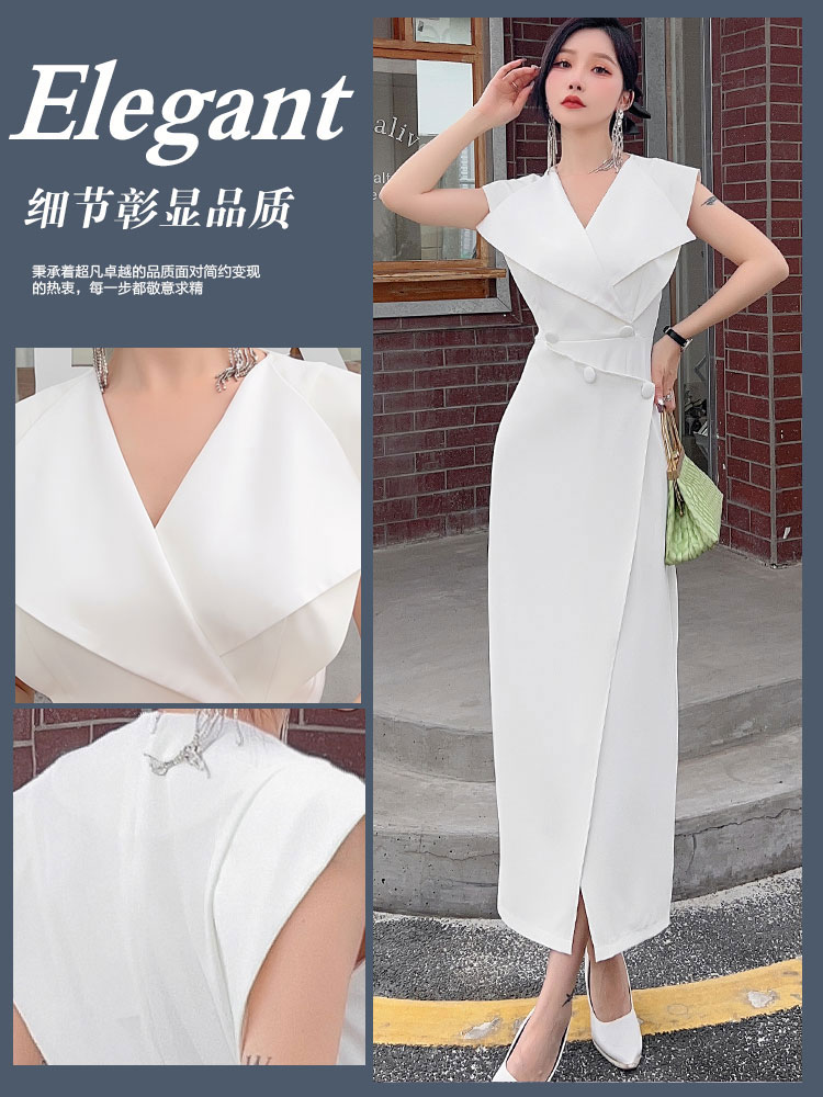 正式場合職業休閑法式高端精致氣質顯瘦修身包臀連衣裙女白色長裙