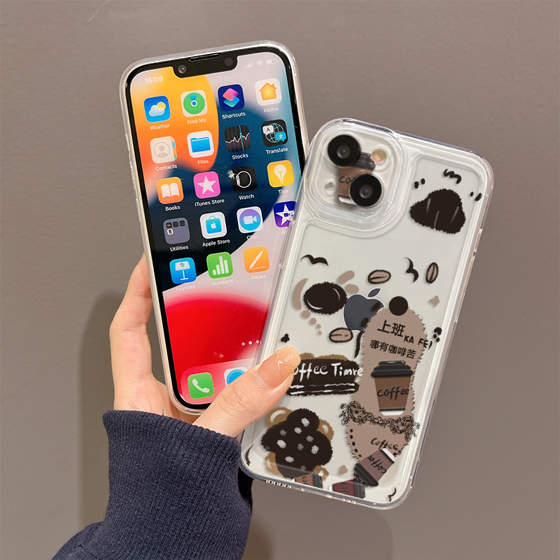 復古冰美式咖啡適用蘋果14promax手機殼iPhone13透明12mini小眾創意11pro新款1plus5卡通xs女xr全包x防摔硬殼