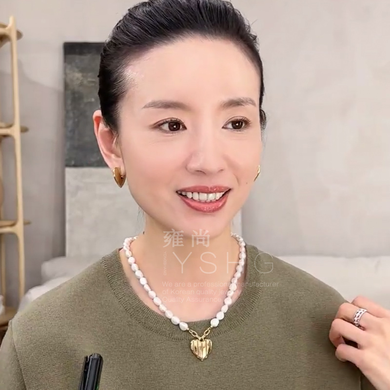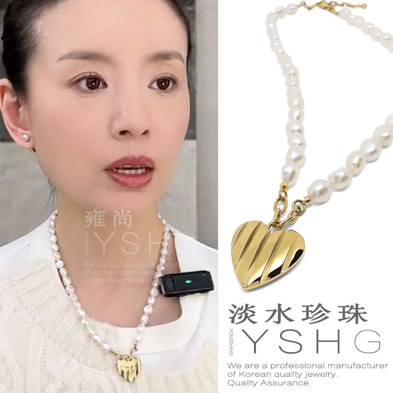 董潔同款項鏈 天然淡水珍珠愛心鎖骨鏈心形巴洛克氣質小眾設計女