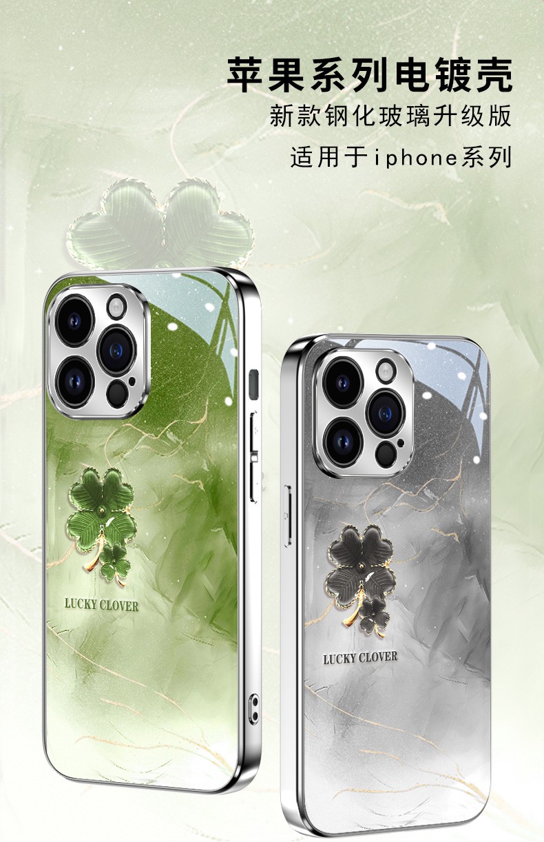 創意四葉草手機殼蘋果13適用iphone14pro蘋果15小眾xs情侶12愛心mini簡約11max男7plus女8玻璃xr硬殼xs新款x