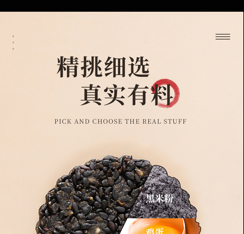 無蔗糖高鈣0添加劑零食純黑芝麻餅