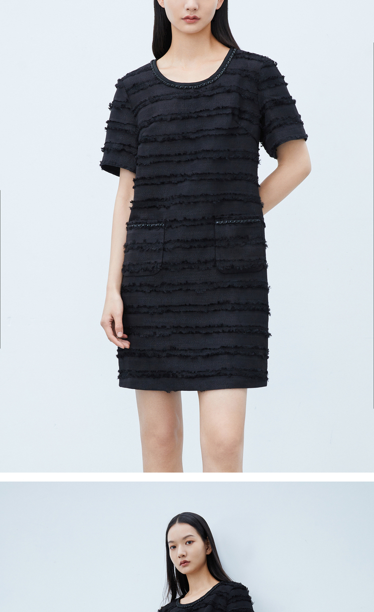 LILY2023秋新款女裝復古小香風優雅氣質通勤顯瘦短款連衣裙小黑裙