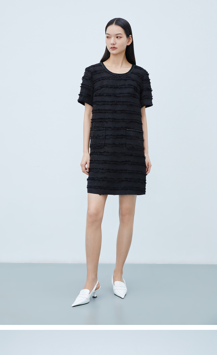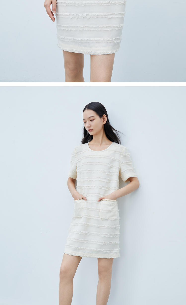 【商場同款】LILY2023夏新款女裝別致剪花復古顯瘦直筒短款連衣裙