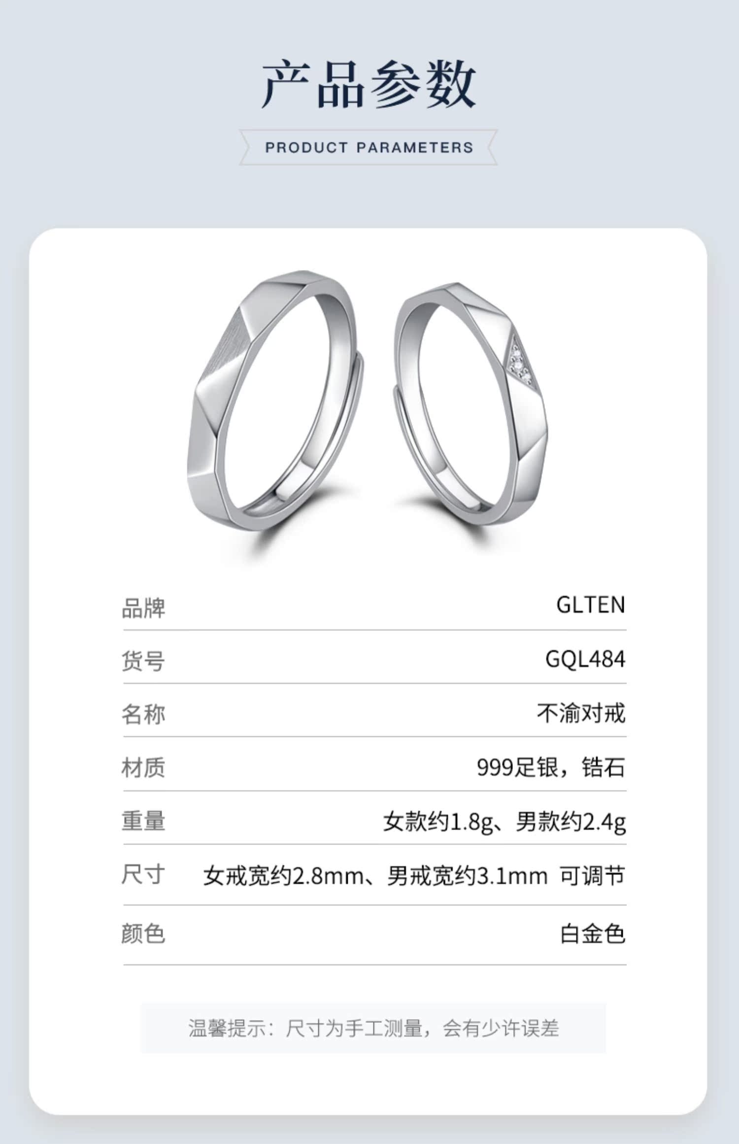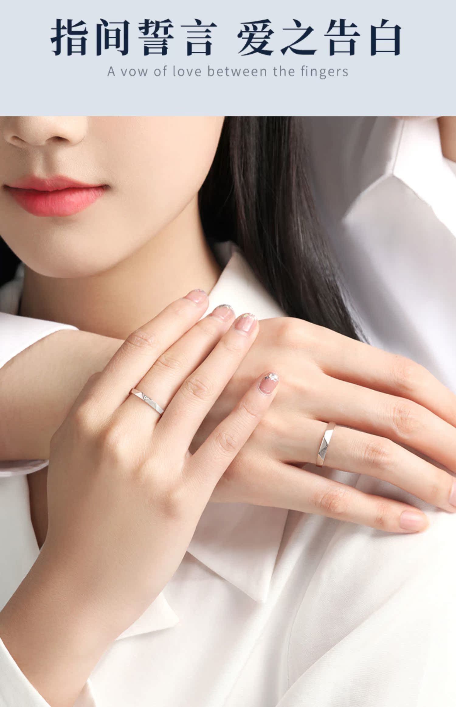 情侶對戒999純銀戒指女小眾設計一對款開口指環生日禮物送女友