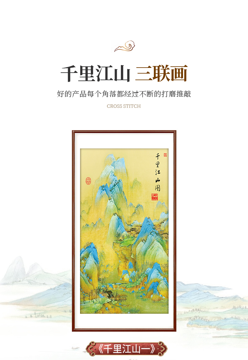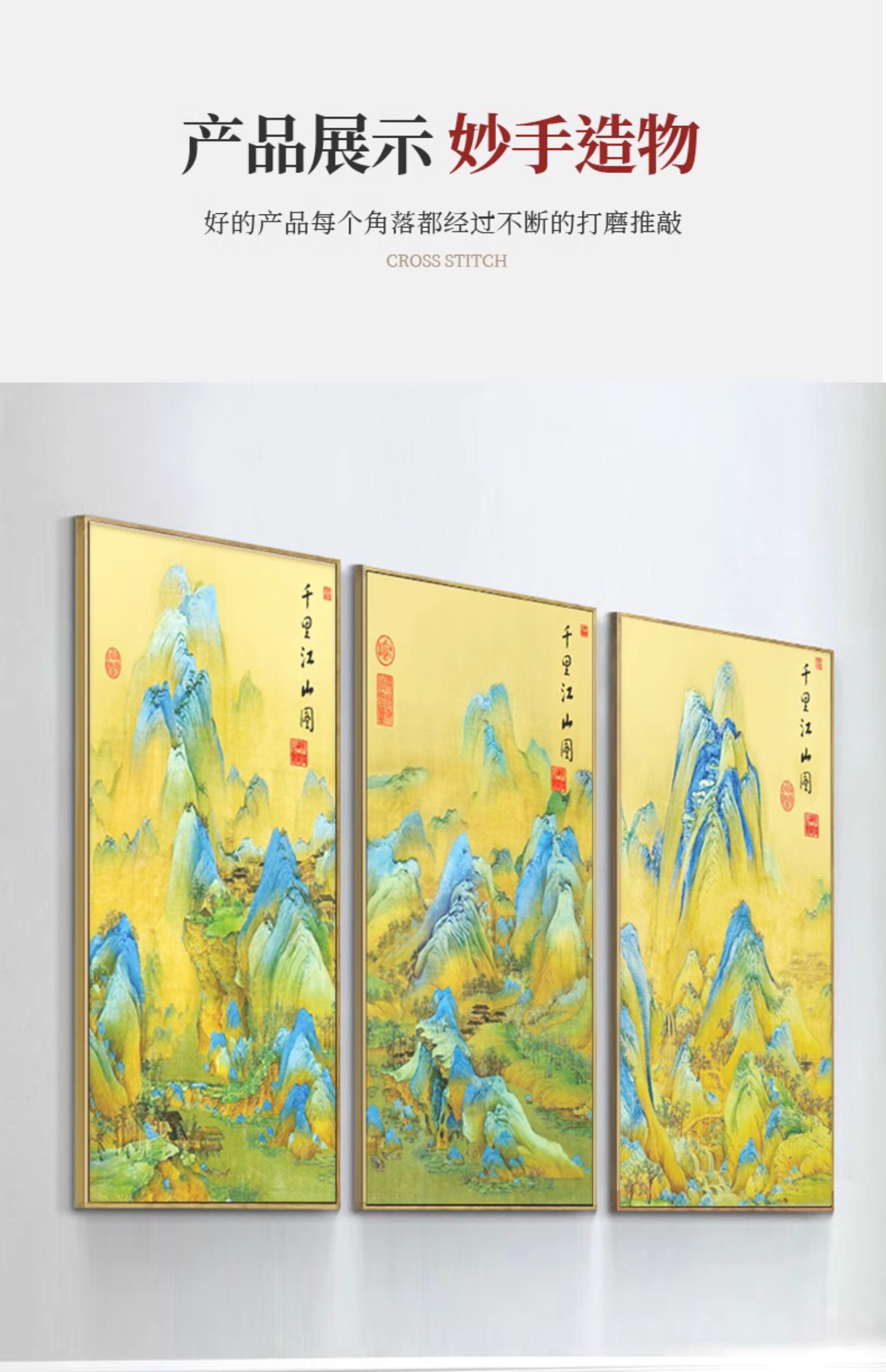 千里江山圖十字繡2023新款線繡廳大幅名畫風景三聯畫豎版客手工繡