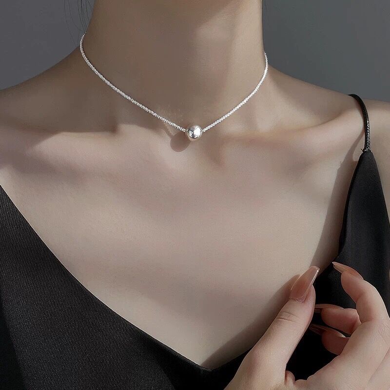 香港正生正品滿天星圓珠純銀項鏈女簡約個性百搭輕奢高級感網紅鎖