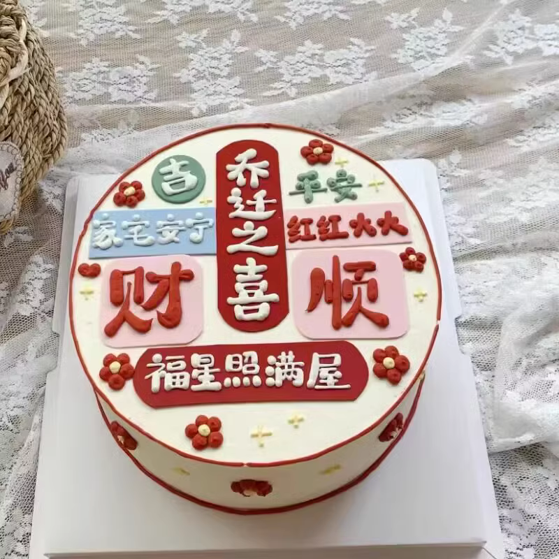 喬遷之喜烘焙蛋糕裝飾軟膠祝福語擺件家宅安寧福星照滿屋財順插件