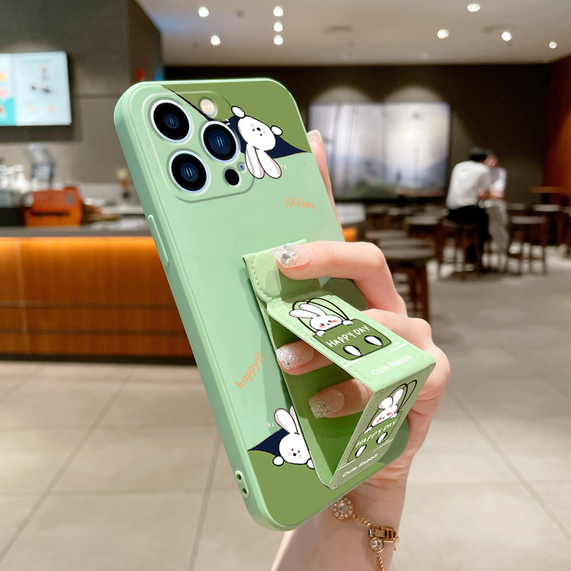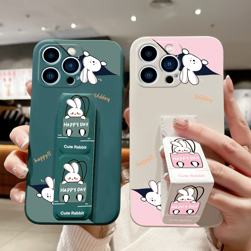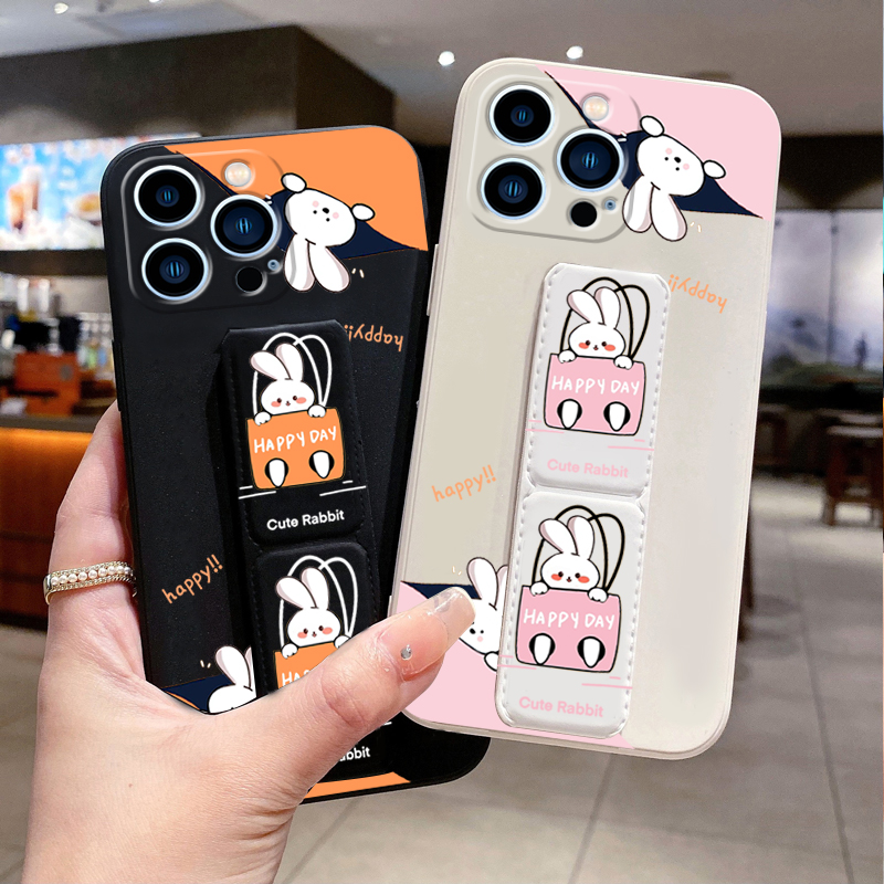適用蘋果14手機殼14Pro歪頭兔14ProMax磁吸支架13ProMax折疊腕帶12mini女款iPhone11/X/XS/XR/8/7/6S硅膠軟殼