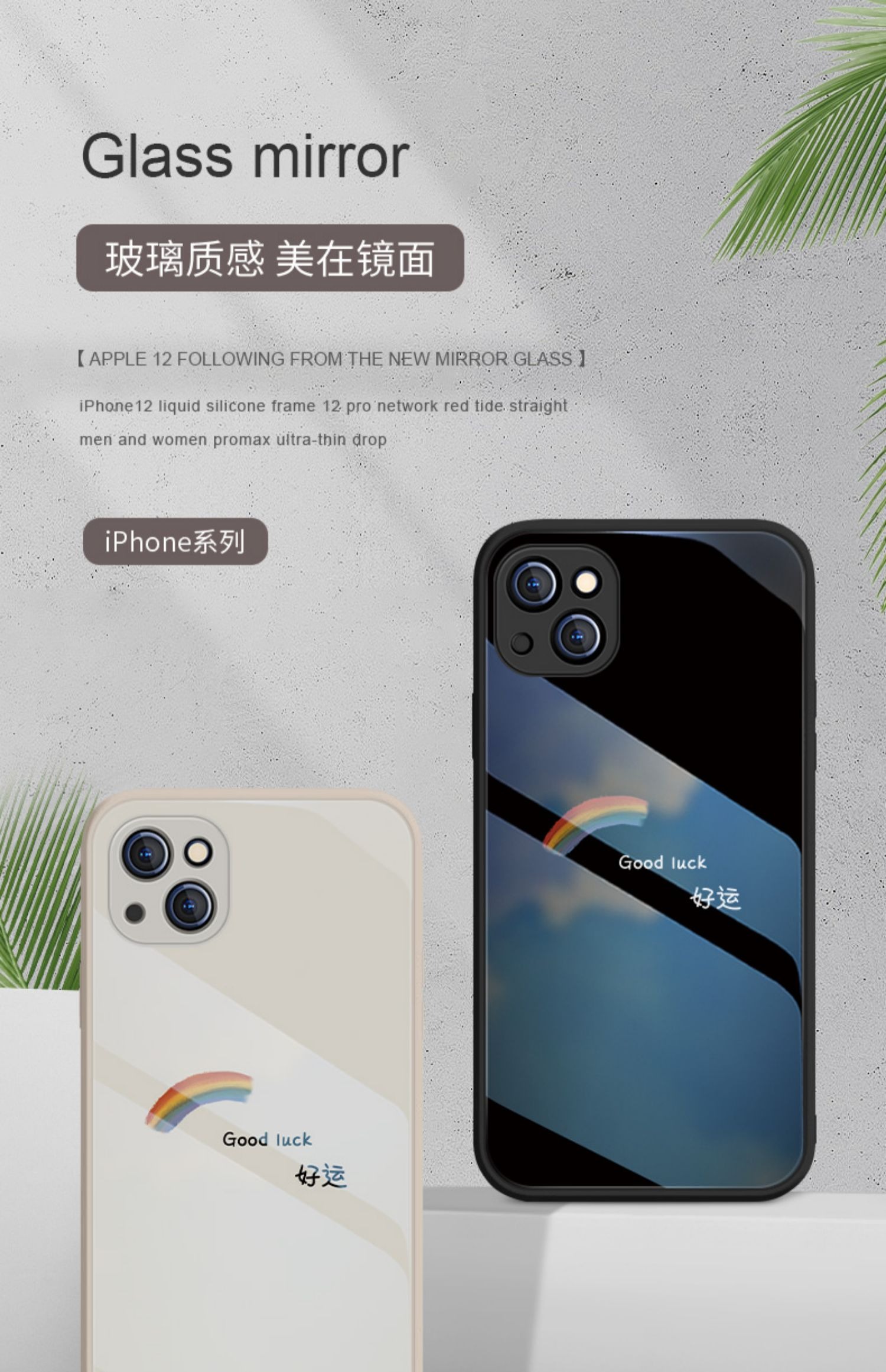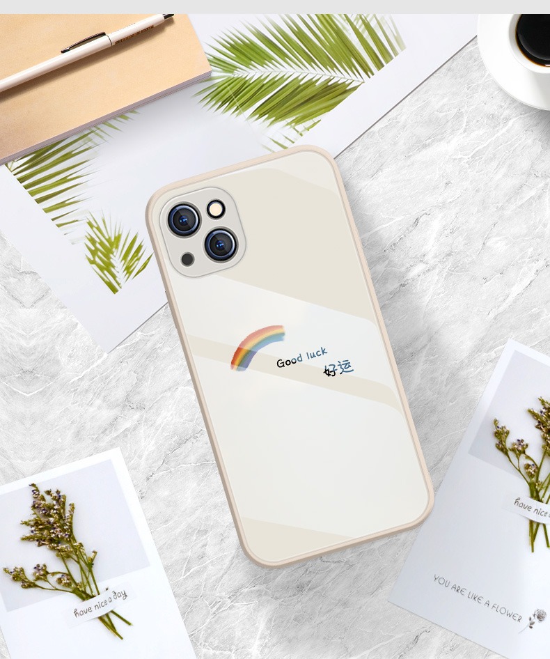 彩虹好運適用蘋果14promax手機殼新款iphone13簡約情侶12mini女11玻璃xsmax液態xr硅膠se3防摔78plus保護套6s