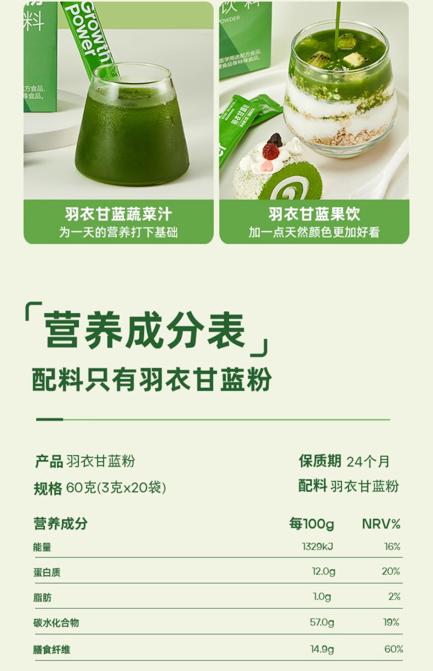 羽衣甘藍粉官方旗艦店膳食纖維健身低脂肪青汁蔬菜粉代餐粉