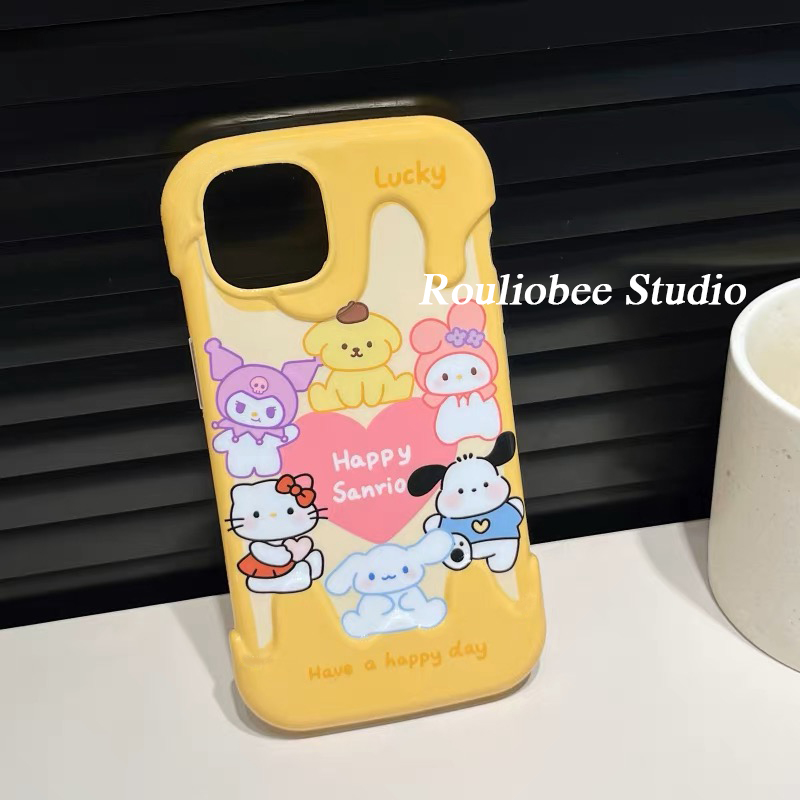 冰淇淋融化粉底Kitty貓適用iPhone14promax手機殼蘋果13promax軟殼14Pro卡通14/13男/女款12/11/8P立體蝴蝶