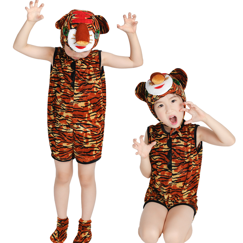 萬圣節兒童服裝女童老虎cos冬睡衣