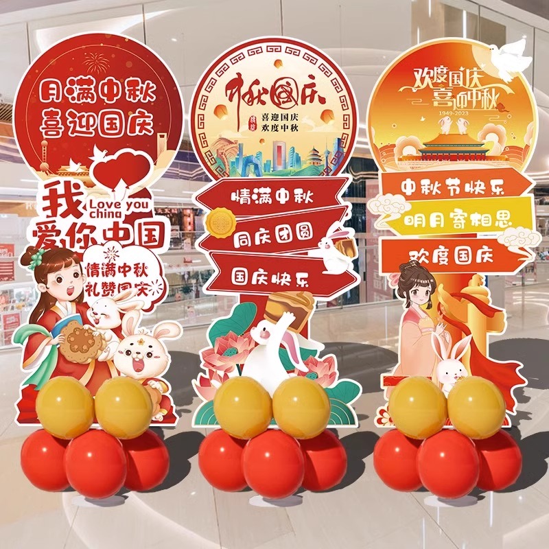 中秋國慶節裝飾布置氣球kt板迎賓牌擺件商場珠寶店鋪門口活動裝扮