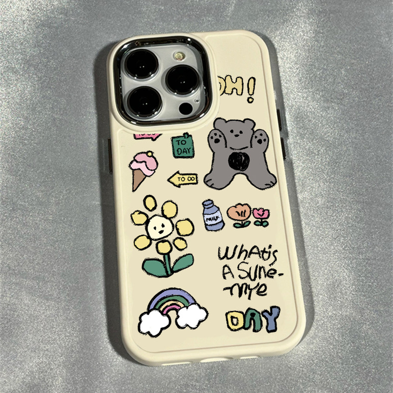 可愛卡通涂鴉花朵小熊適用iPhone14promax蘋果13手機殼新款13pro高級感14pro防摔12硅膠11女13全包軟殼保護套