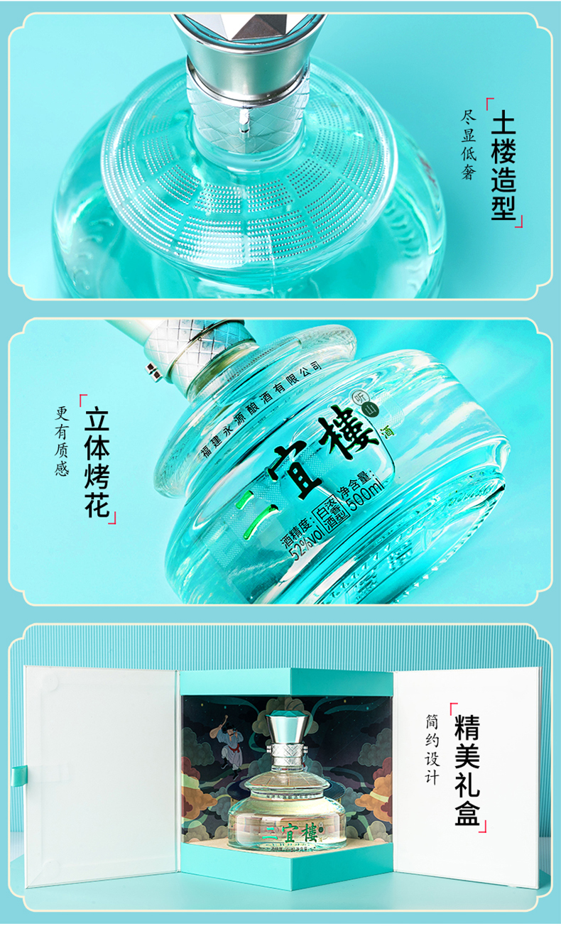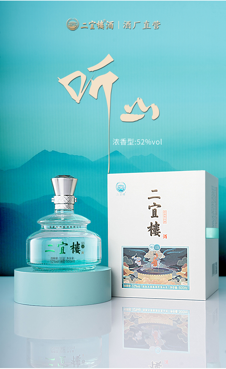 福建二宜樓白酒新品禮盒裝52度濃香型五谷釀造純糧酒聽山口糧酒