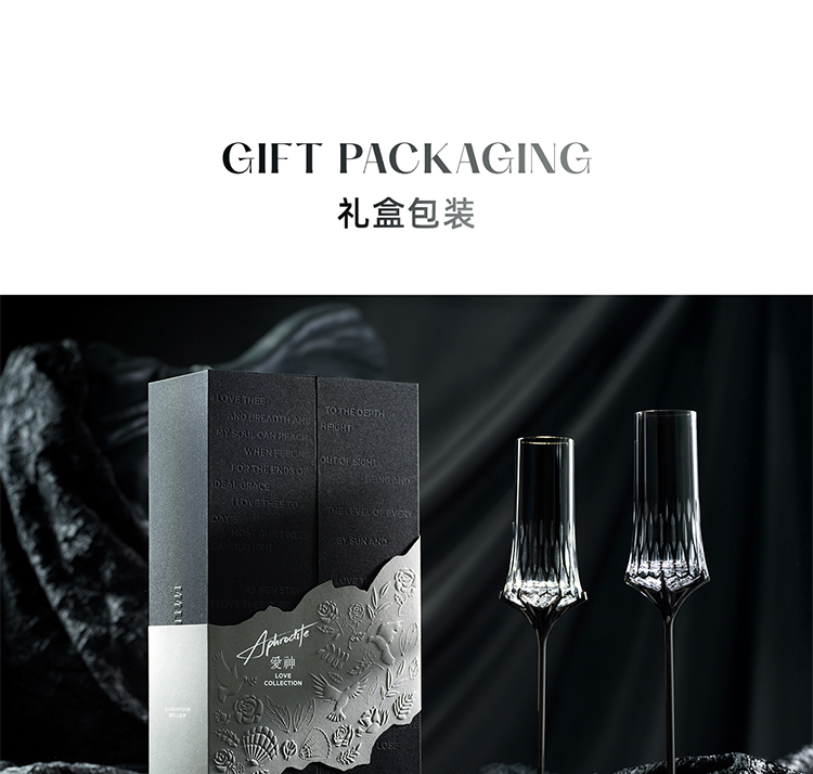 MU16黑愛神香檳杯新婚結婚禮物高顏值高腳杯子禮盒裝2支