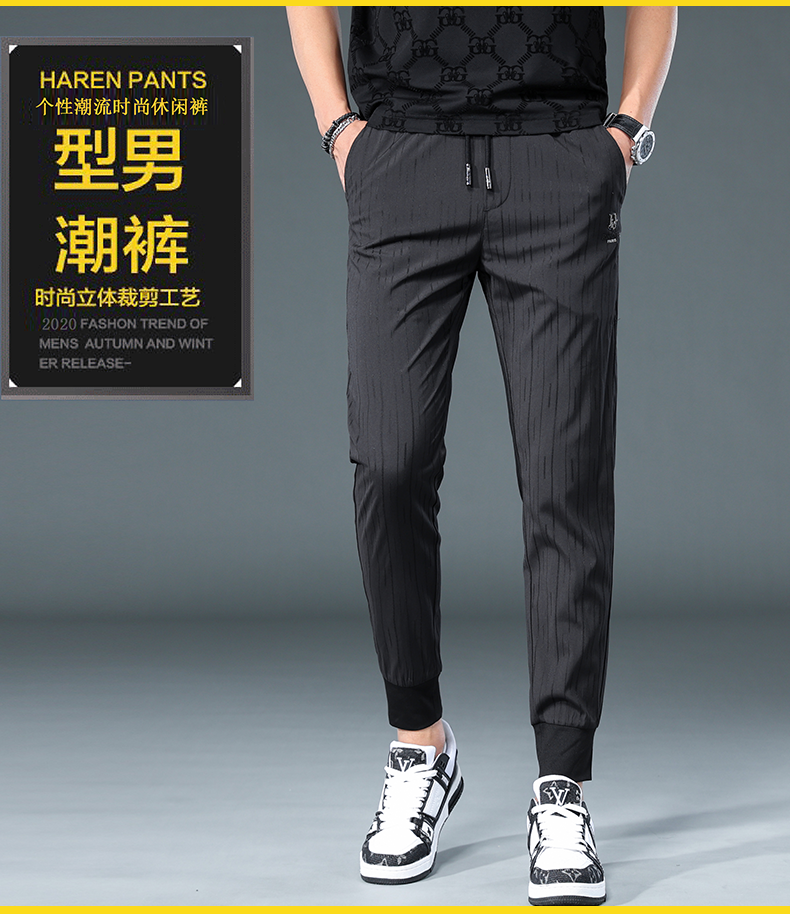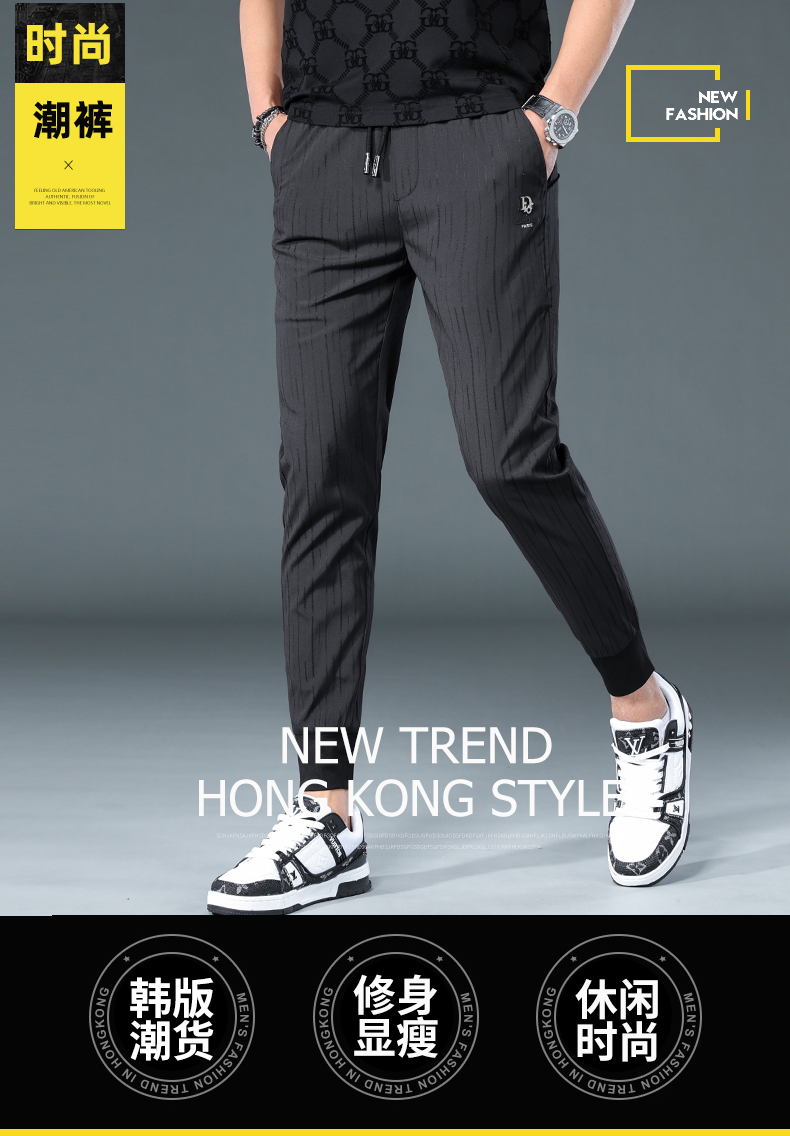 2024男士休閑褲春夏季歐貨潮流時尚修身彈力舒適運動束腳衛褲潮