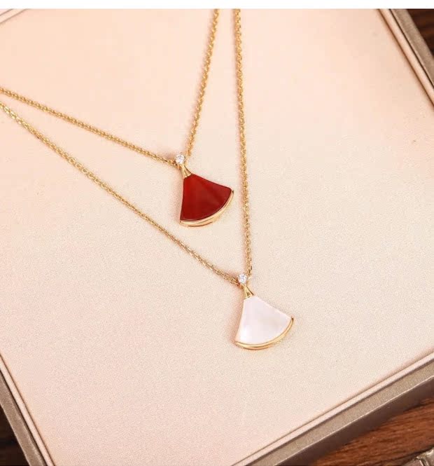韓版飾品小裙子扇形鈦鋼玫瑰金項鏈女2023年新款白貝母鎖骨鏈女