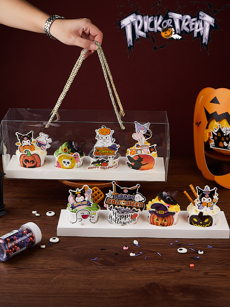 萬圣節手拎盒紙杯蛋糕裝飾插件庫洛米幽靈南瓜狂歡夜派對甜品插牌