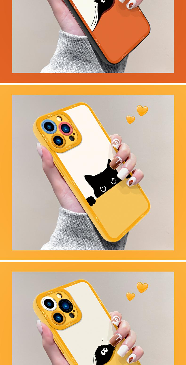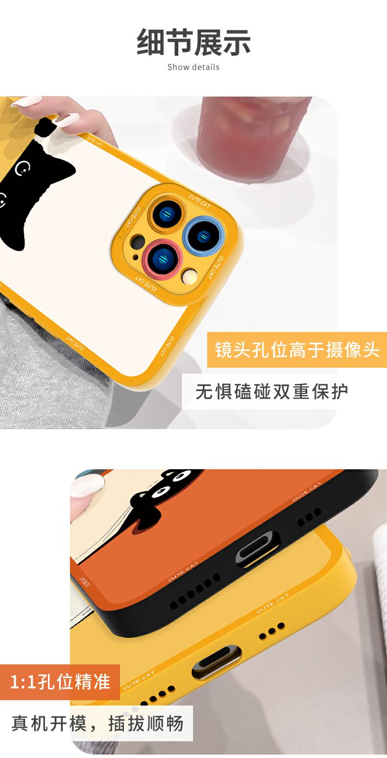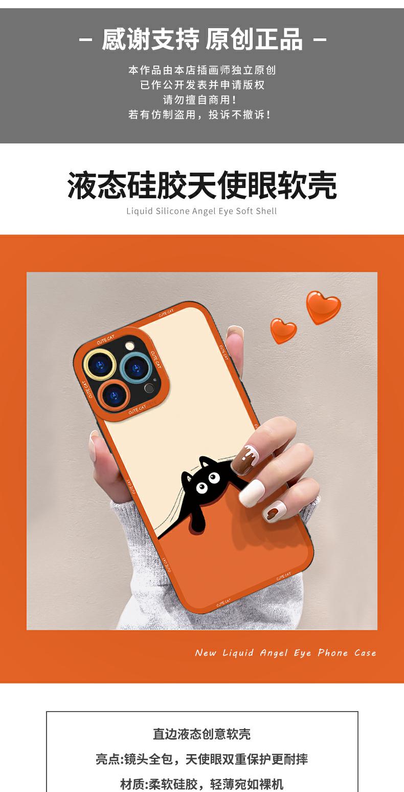 適用蘋果13手機殼iphone14可愛黑貓15promax高級11天使眼xs液態硅膠max鏡頭全包7/8p超薄6情侶se小眾女保護套