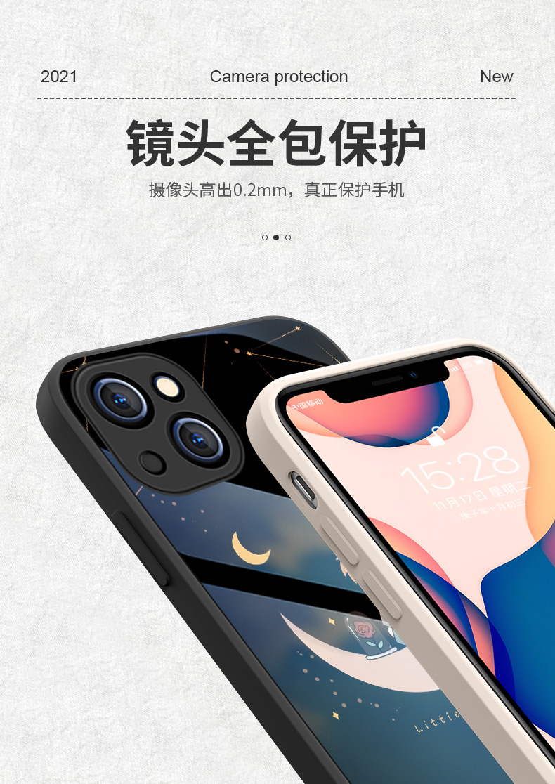 適用于蘋果15promax新款高級感玻璃手機殼小米13鏡頭全包華為mate50可愛星球與玫瑰花14pro榮耀90防摔vivox90