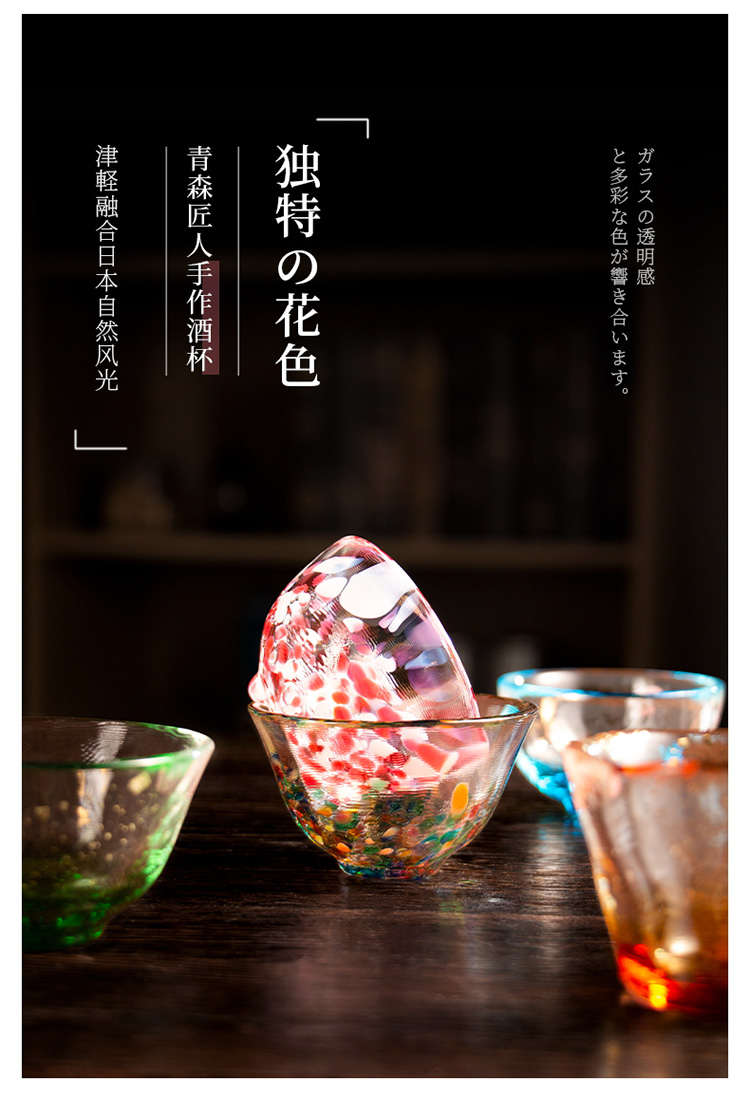 aderia津輕彩色手作清酒杯玻璃酒杯酒具高檔家用裝酒高顏值果酒杯
