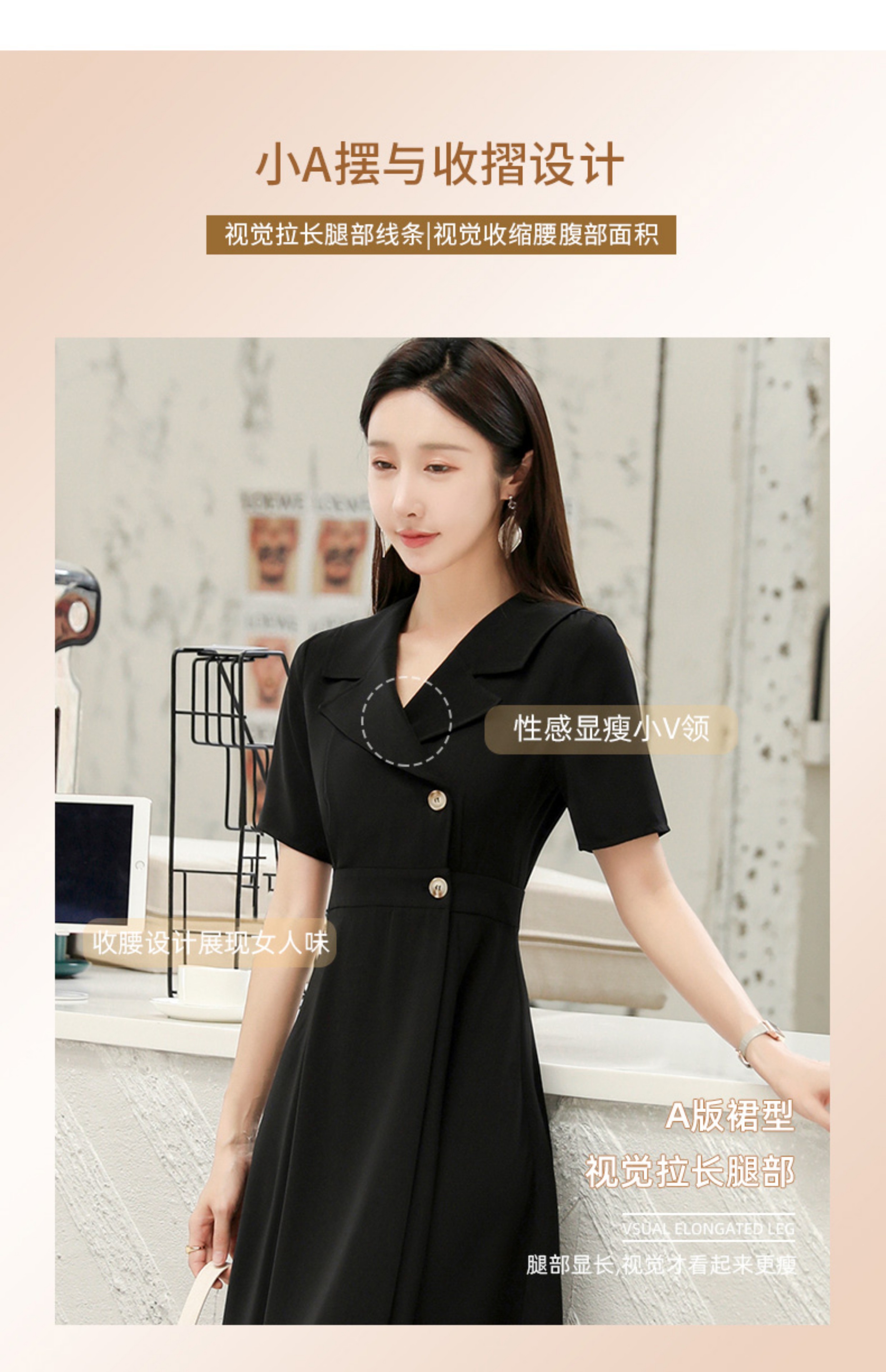 連衣裙女夏黑色小個子2023新款西裝裙職業收腰氣質裙子顯瘦小黑裙