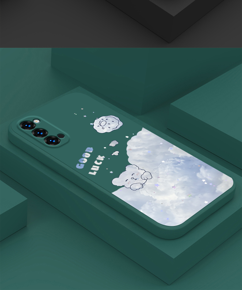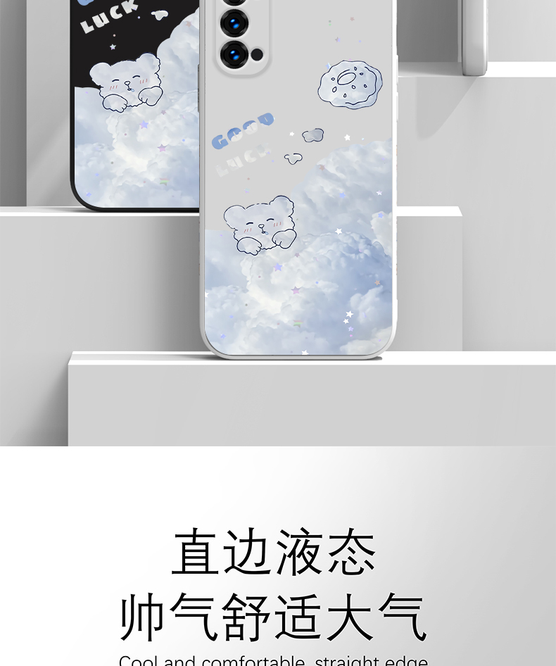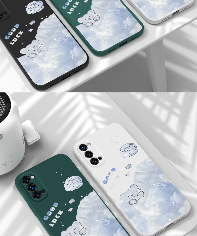 opporeno4se手機殼新款云朵兔子小熊直邊男女款reno4手機套reno4 pro軟殼液態硅膠5g超薄PEAM00全包防摔外殼