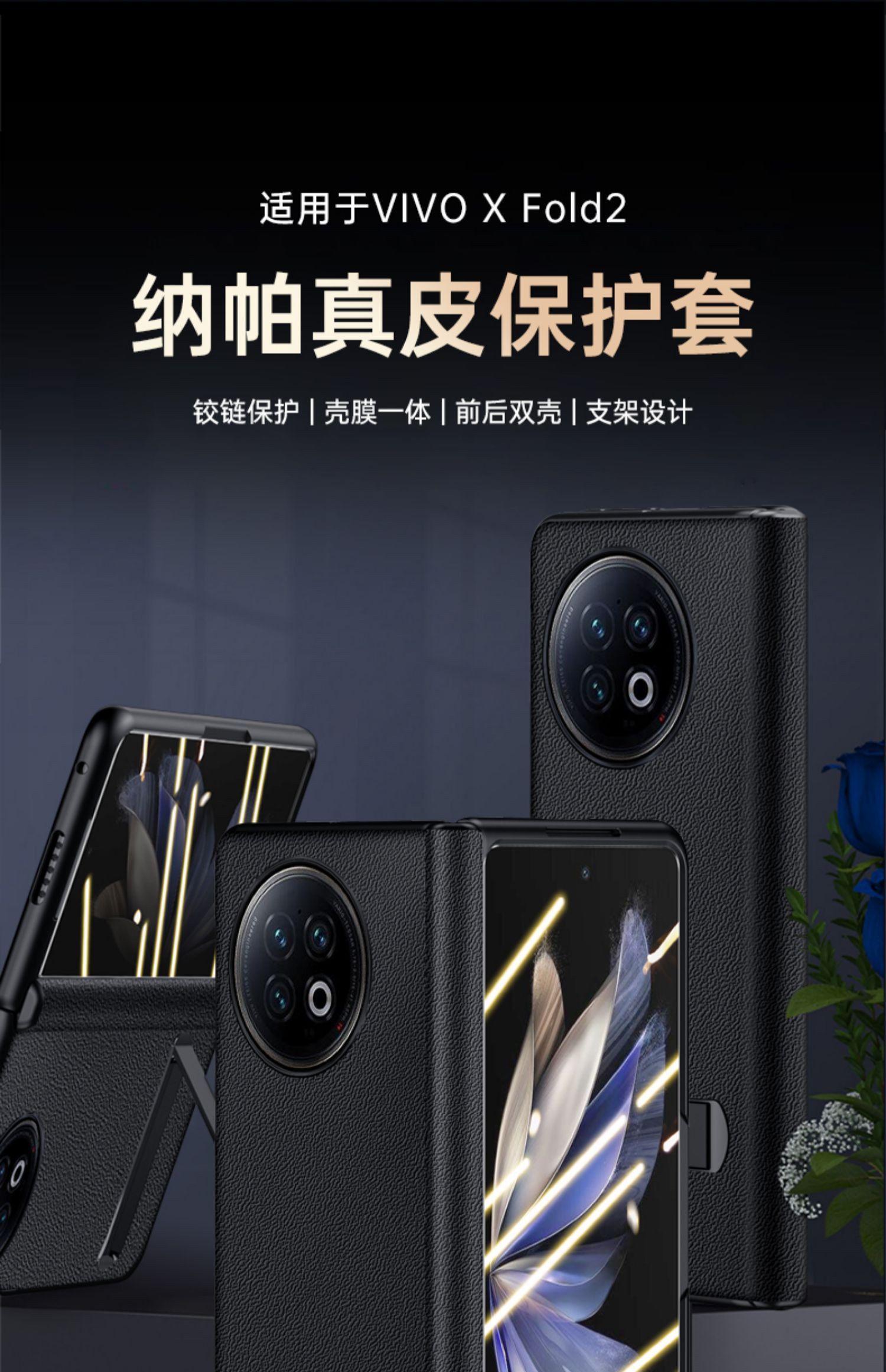vivoxfold2手機殼新款真皮vivo X Fold2折疊屏保護套素皮網紅xf2防摔高級感flod2全包殼膜一體高檔外殼適用于