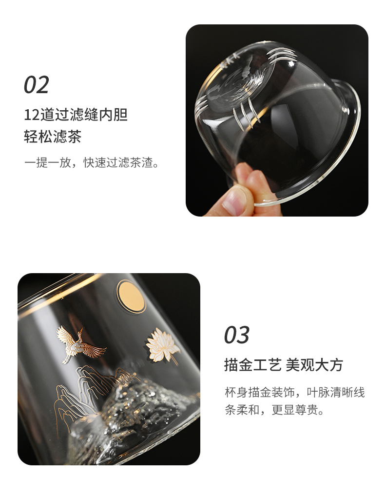 耐高溫玻璃杯高顏值泡茶家用茶水分離功夫茶杯高硼硅加厚防燙水杯