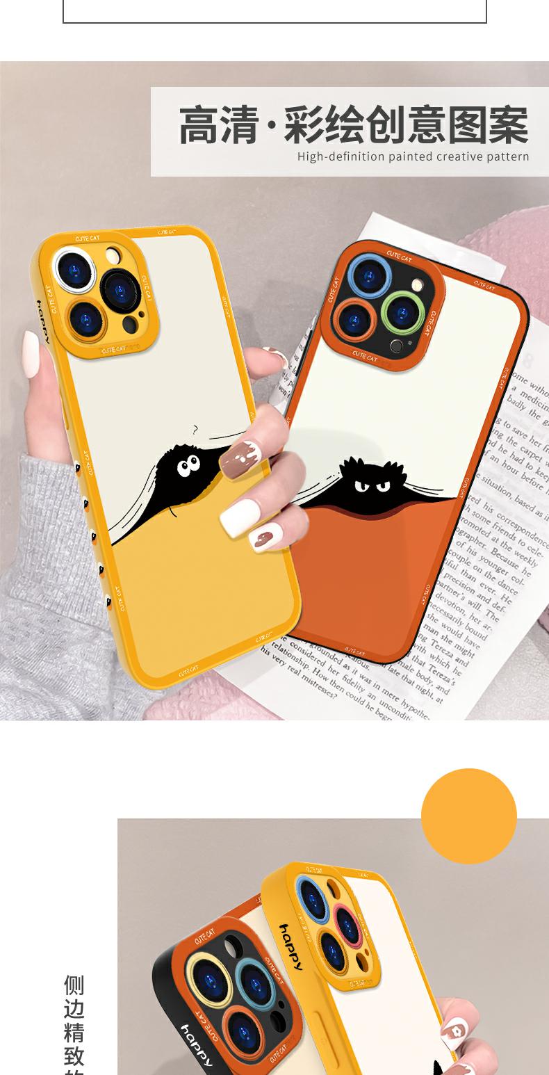 適用蘋果13手機殼iphone14可愛黑貓15promax高級11天使眼xs液態硅膠max鏡頭全包7/8p超薄6情侶se小眾女保護套