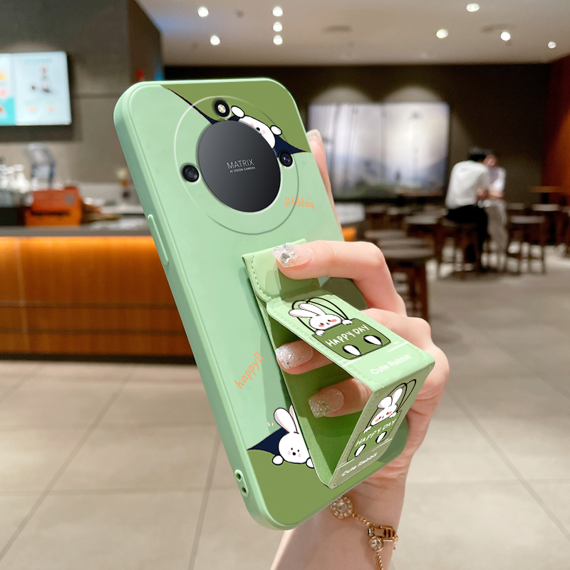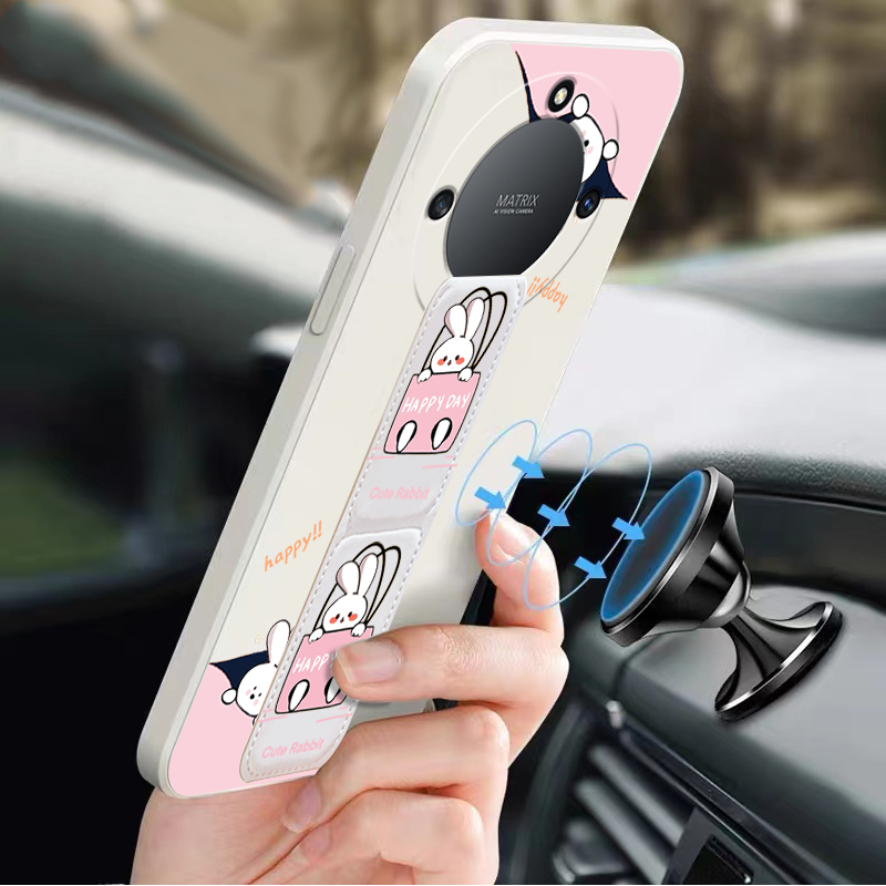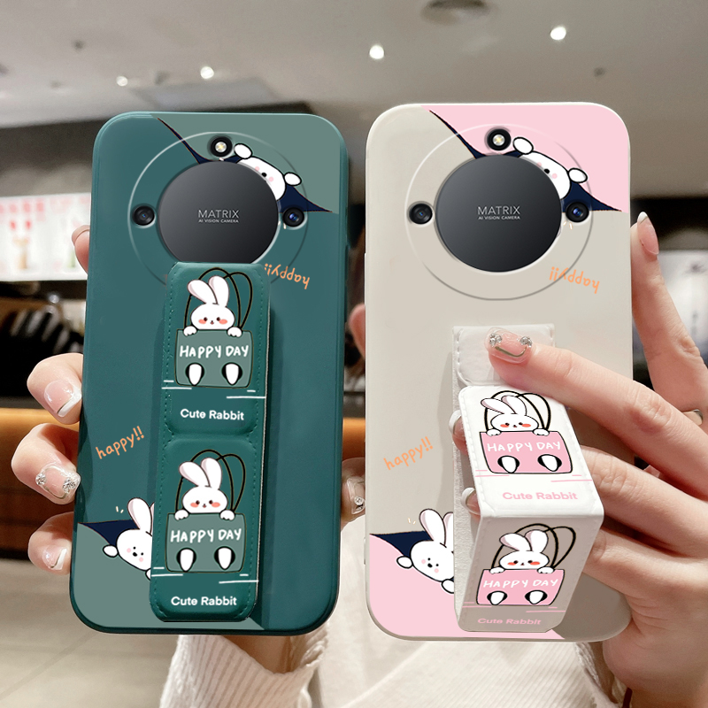 榮耀90手機殼90Pro女款防摔磁吸支架套榮耀80Pro直屏版/70/60/50SE/30青春版20/10歪頭兔折疊腕帶套硅膠軟殼