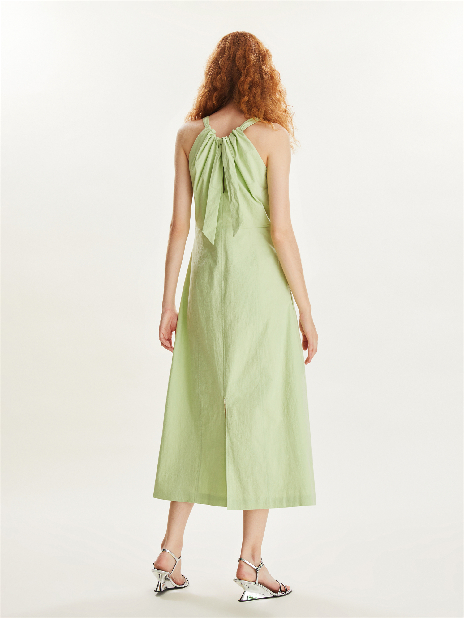LLANO夏日晚風掛脖串珠綁帶連衣裙復古法式度假浪漫中長裙女夏季