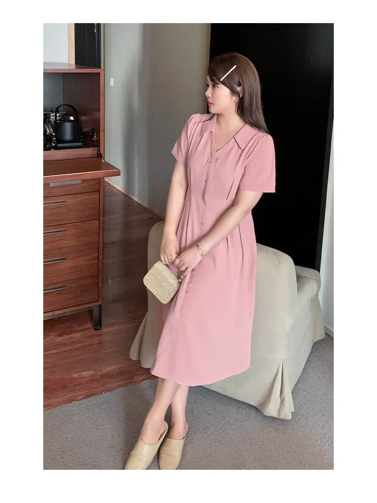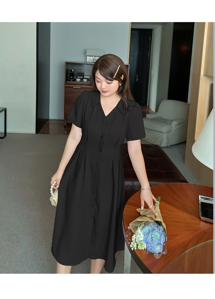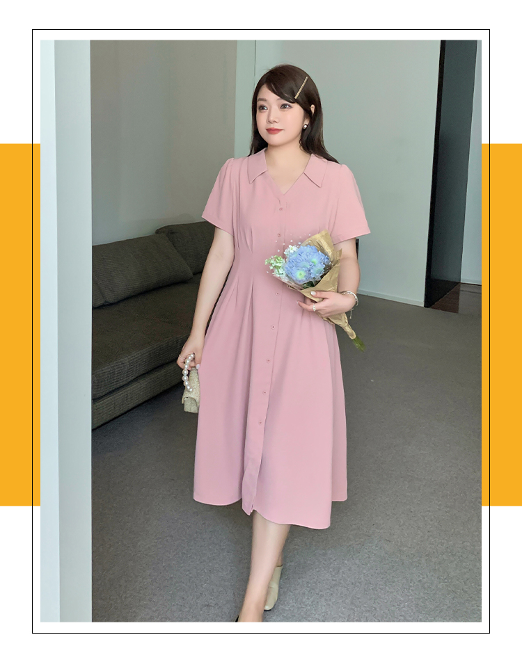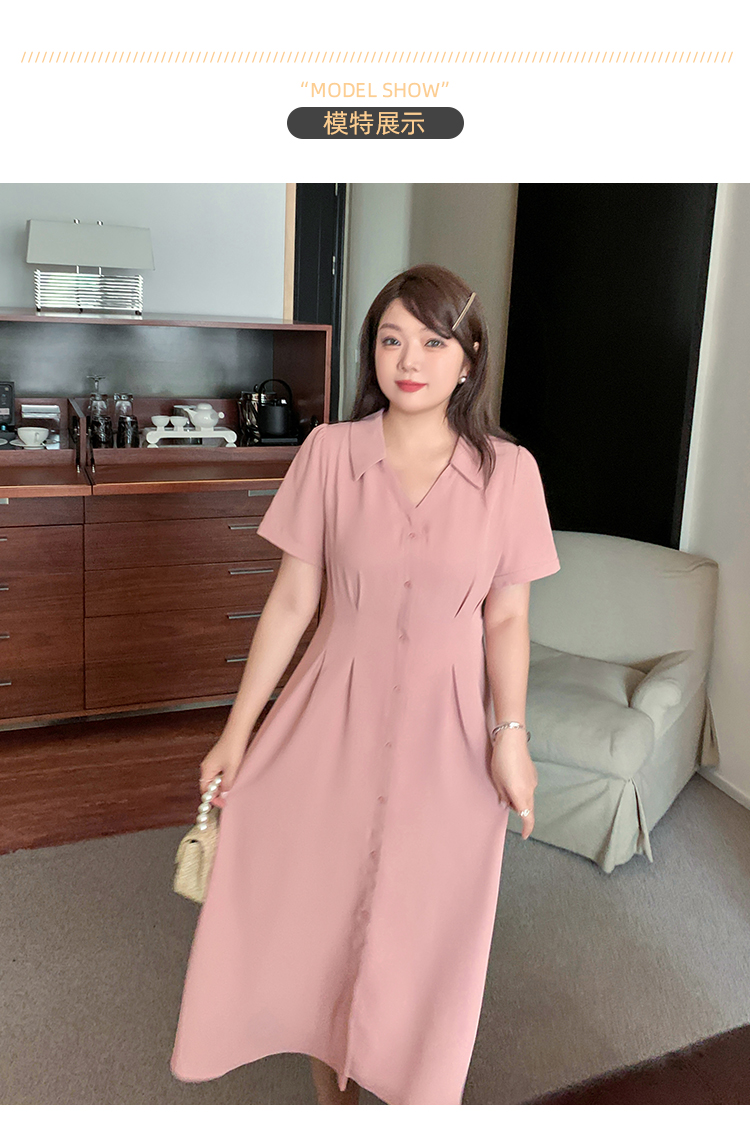 復古大碼鹽甜系純欲風Polo領襯衫裙胖mm設計感遮肉顯瘦a字連衣裙