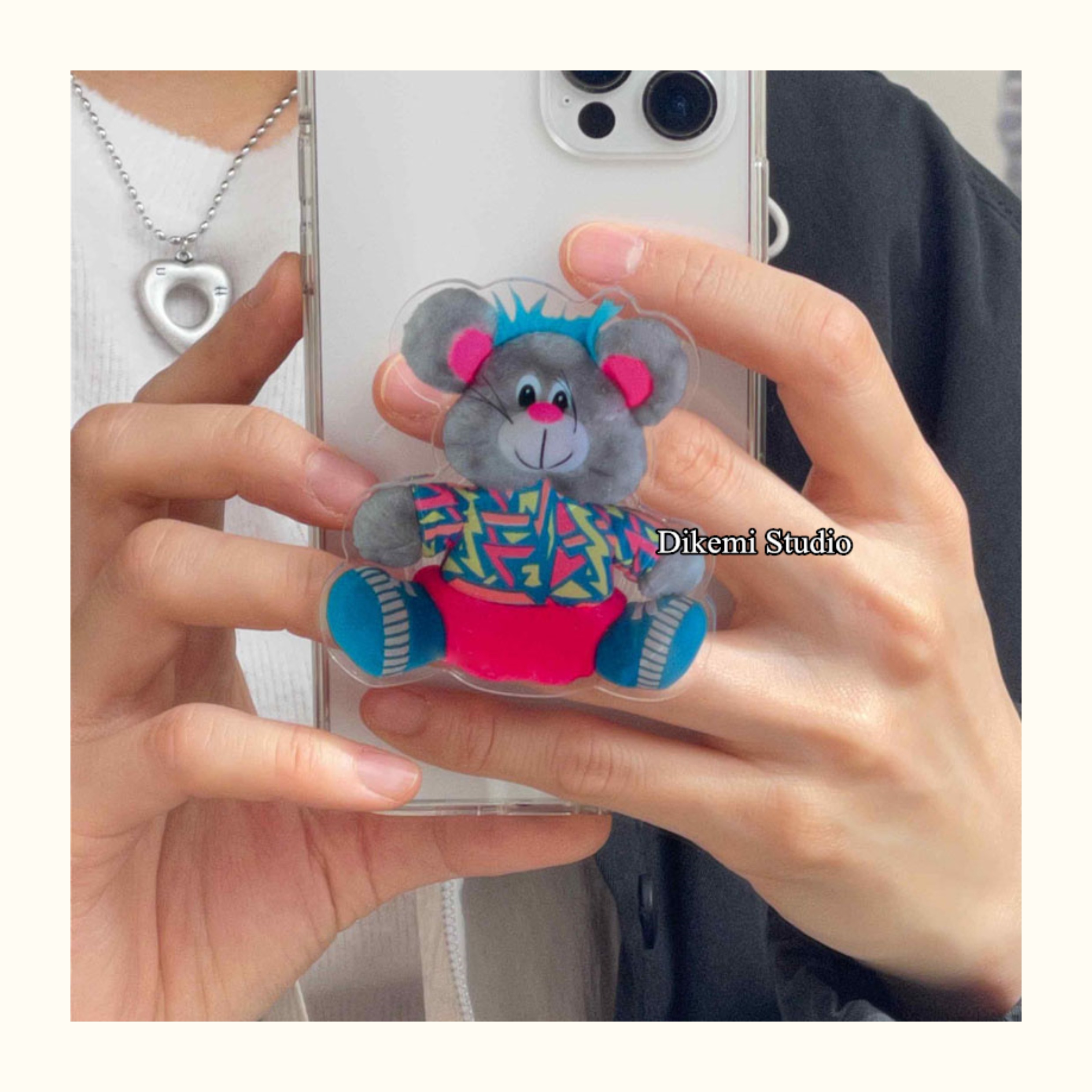 ins小眾可愛萌卡通Mouse玩偶氣囊支架軟手機殼適用iphone14promax/13pro蘋果15/12/11全包xsmax透明XR保護套