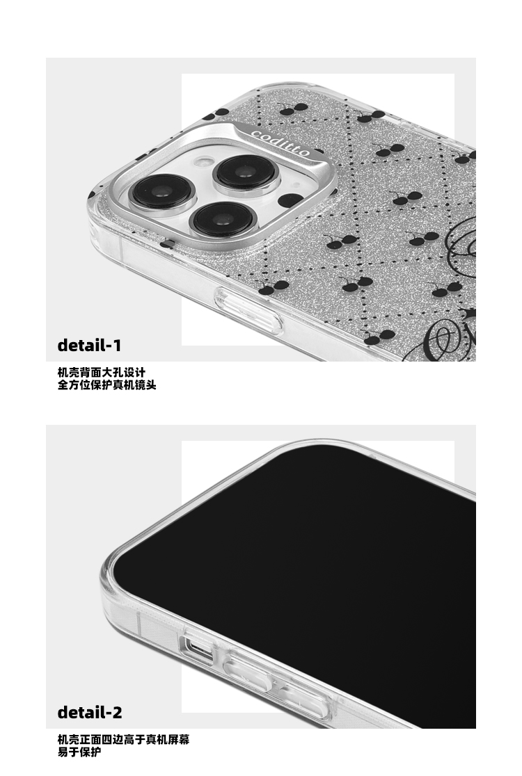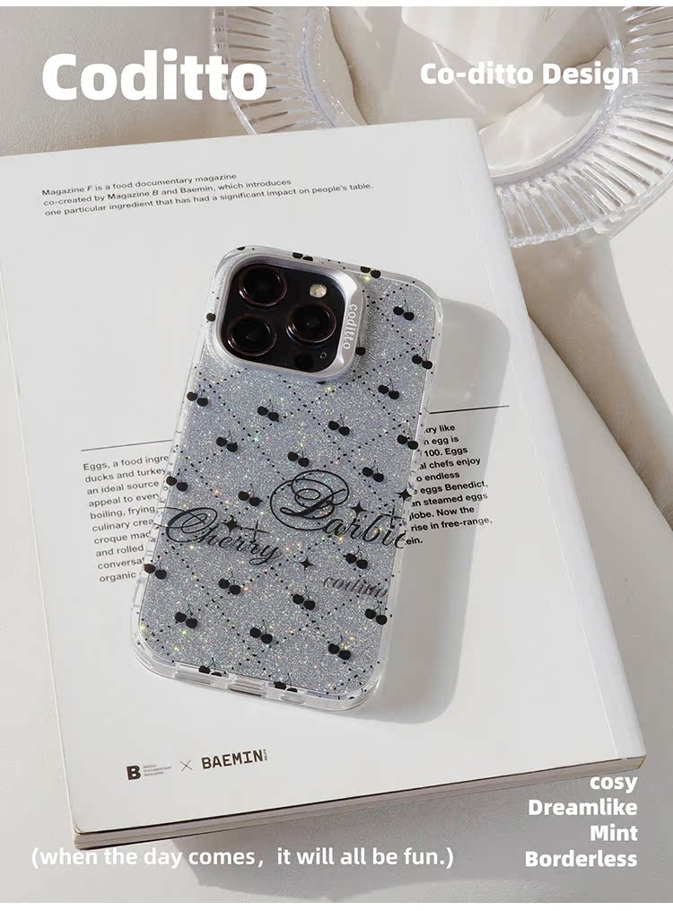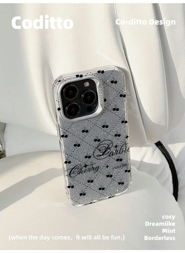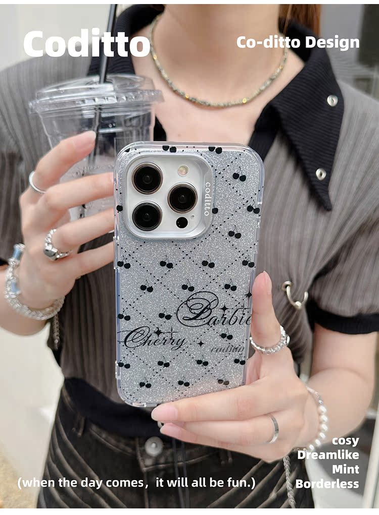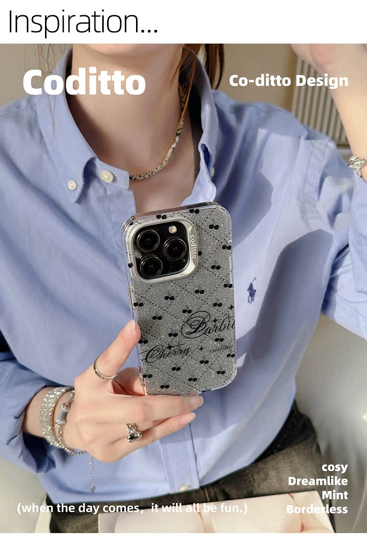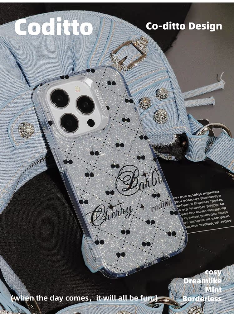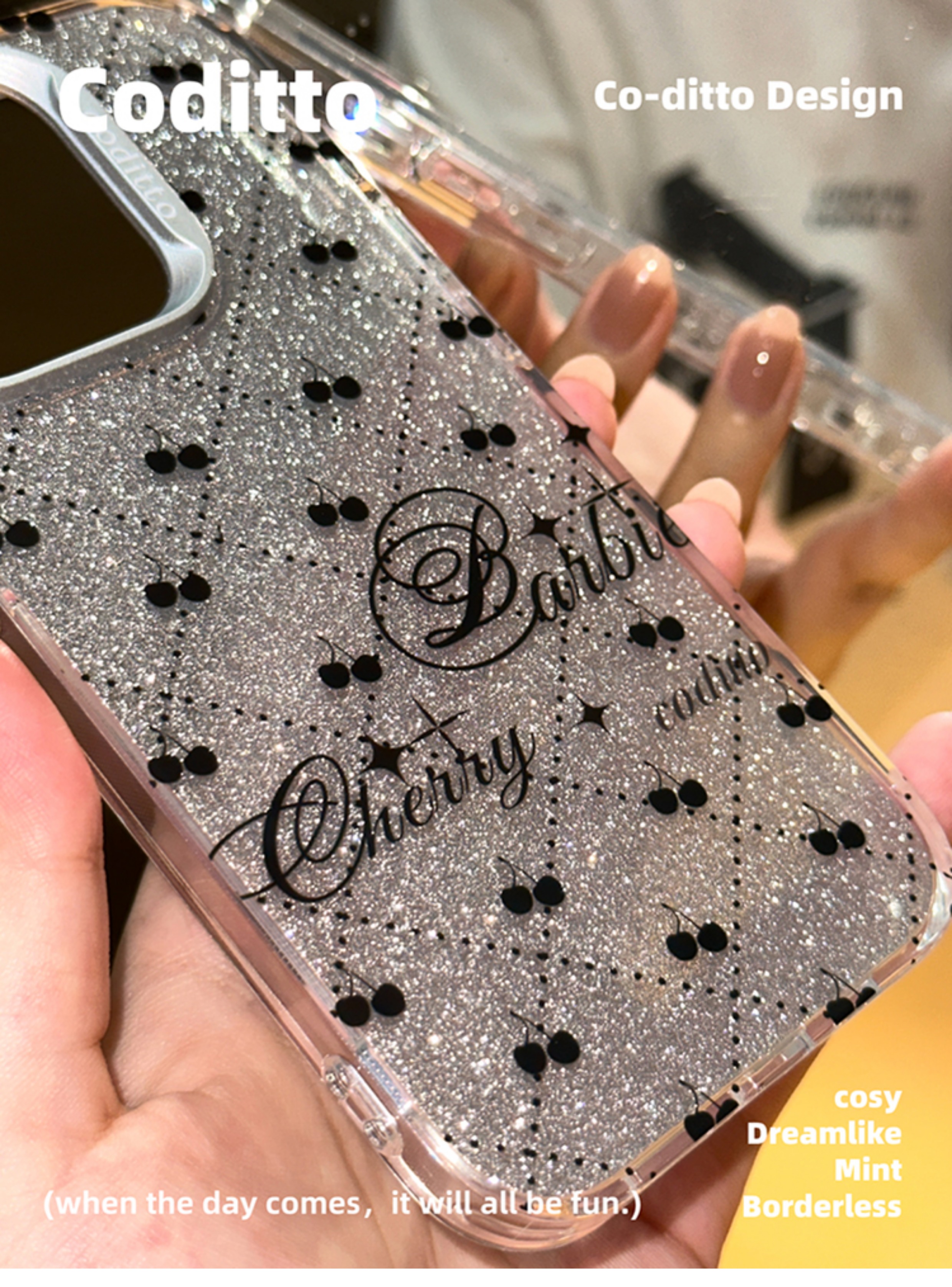 coditto櫻桃芭比閃粉雙層印花適用iphone14手機殼全包蘋果14promax個性iphone13promax原創14pro新款12pro13