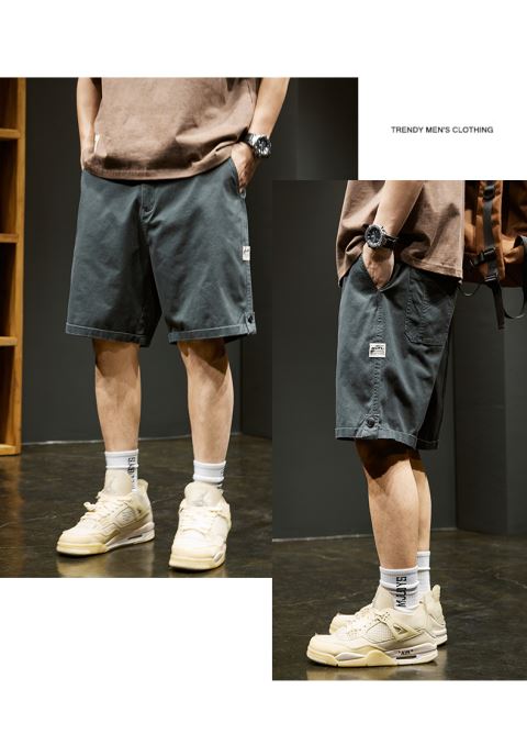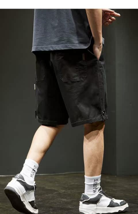 夏季美式工裝短褲男士寬松直筒潮牌休閑中褲薄款彈力運動五分褲子