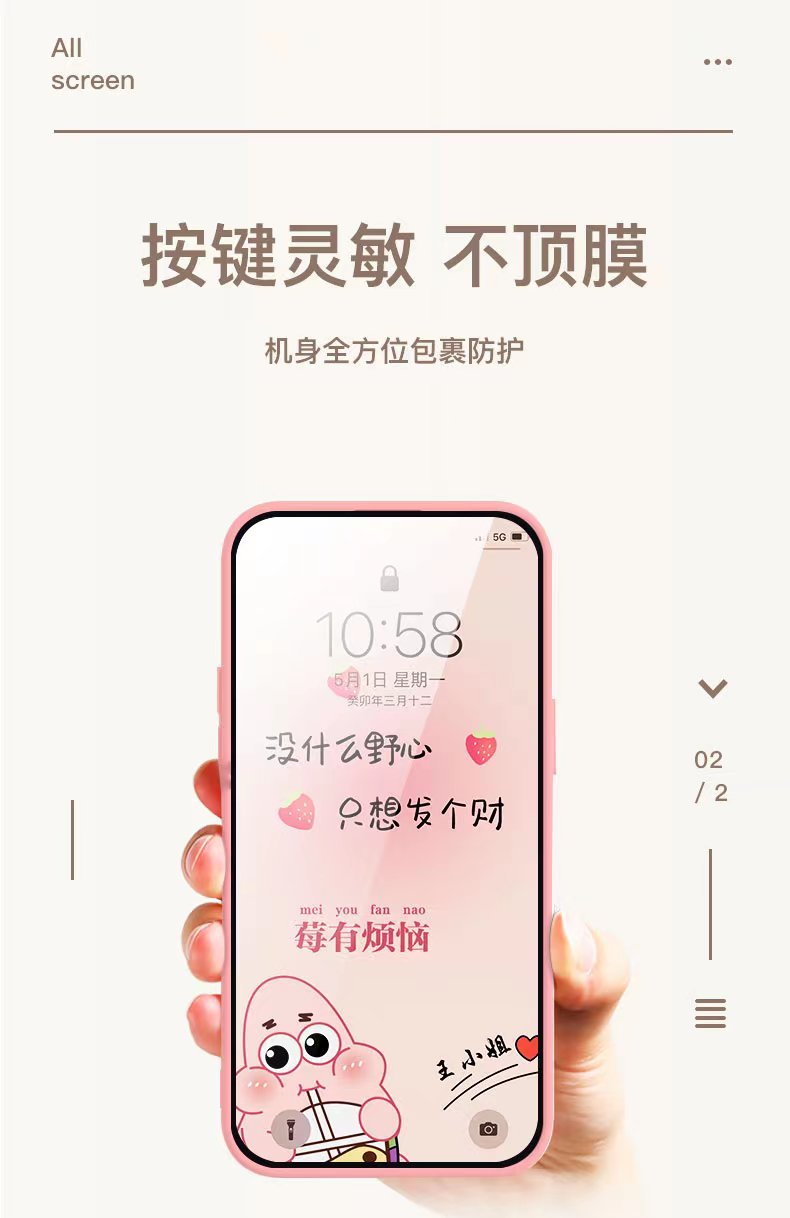 適用于蘋果15手機殼13文字款12Promax發財被愛只發財可愛草莓熊全包式女款掛繩iPhone14奶油殼硅膠軟邊8plus