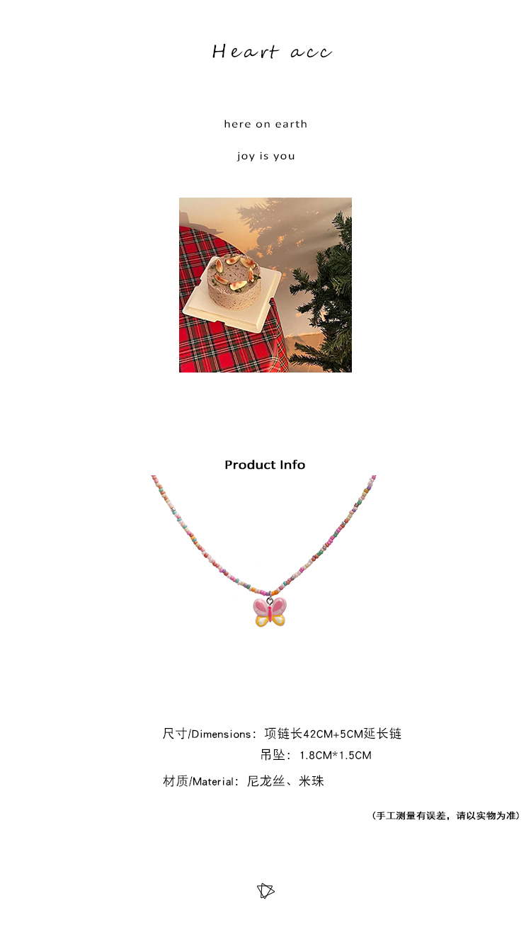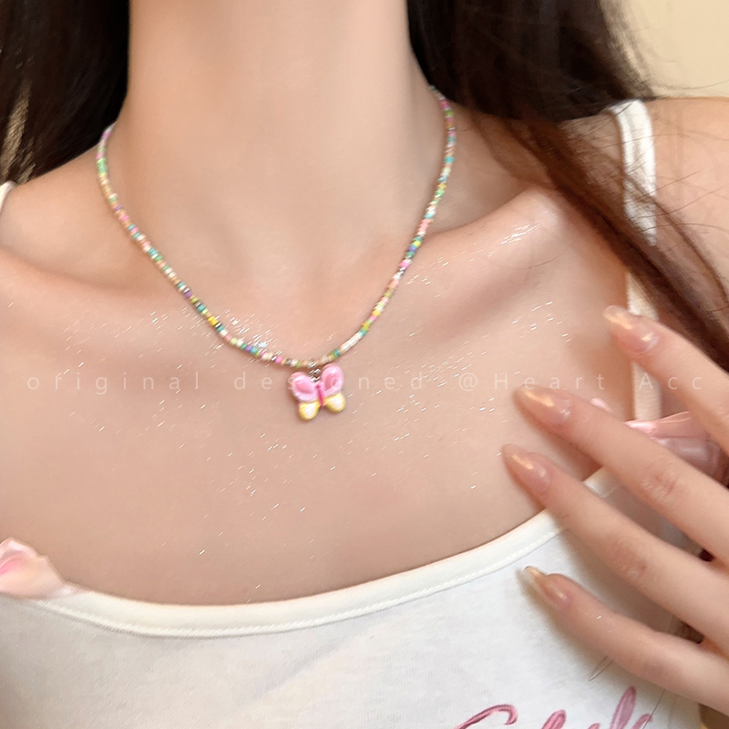 夏日多巴胺!彩色愛心蝴蝶串珠項鏈女2023年新款潮鎖骨鏈甜妹頸鏈