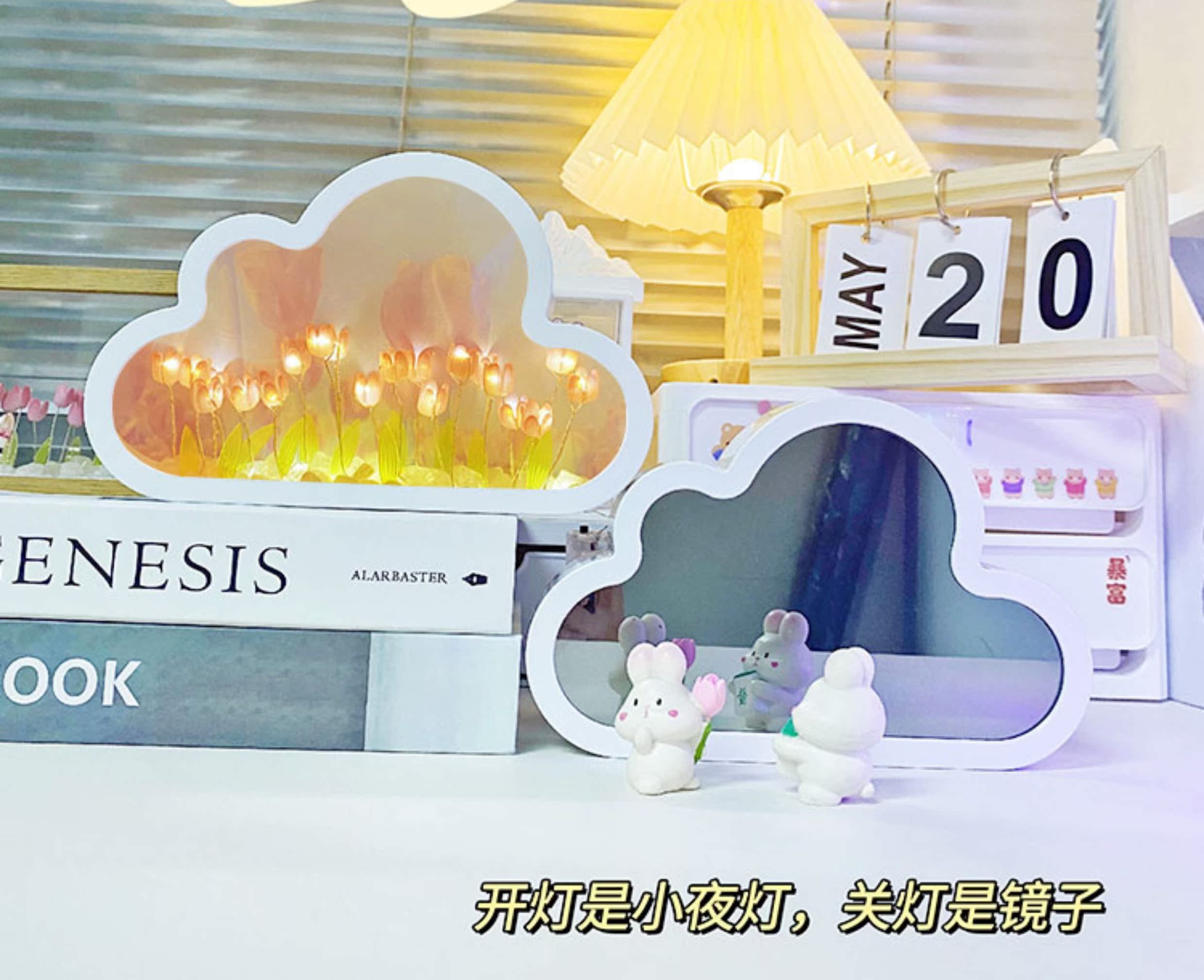 云朵郁金香花海玫瑰小夜燈禮物手工diy女生生日鏡子送女友教師節